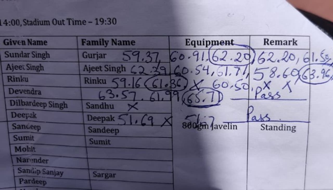 ദേവേന്ദ്ര ജജാരിയക്കൊപ്പം ട്രയൽസിൽ 63.96 ദൂരം താണ്ടിയ അജിത് കുമാർ, 62.20 മീറ്റർ ദൂരം പിന്നിട്ട സുന്ദർ ഗുസർ എന്നിവരും ജാവലിനിൽ പാരാലിമ്പിക്സ് യോഗ്യത ഉറപ്പാക്കി.