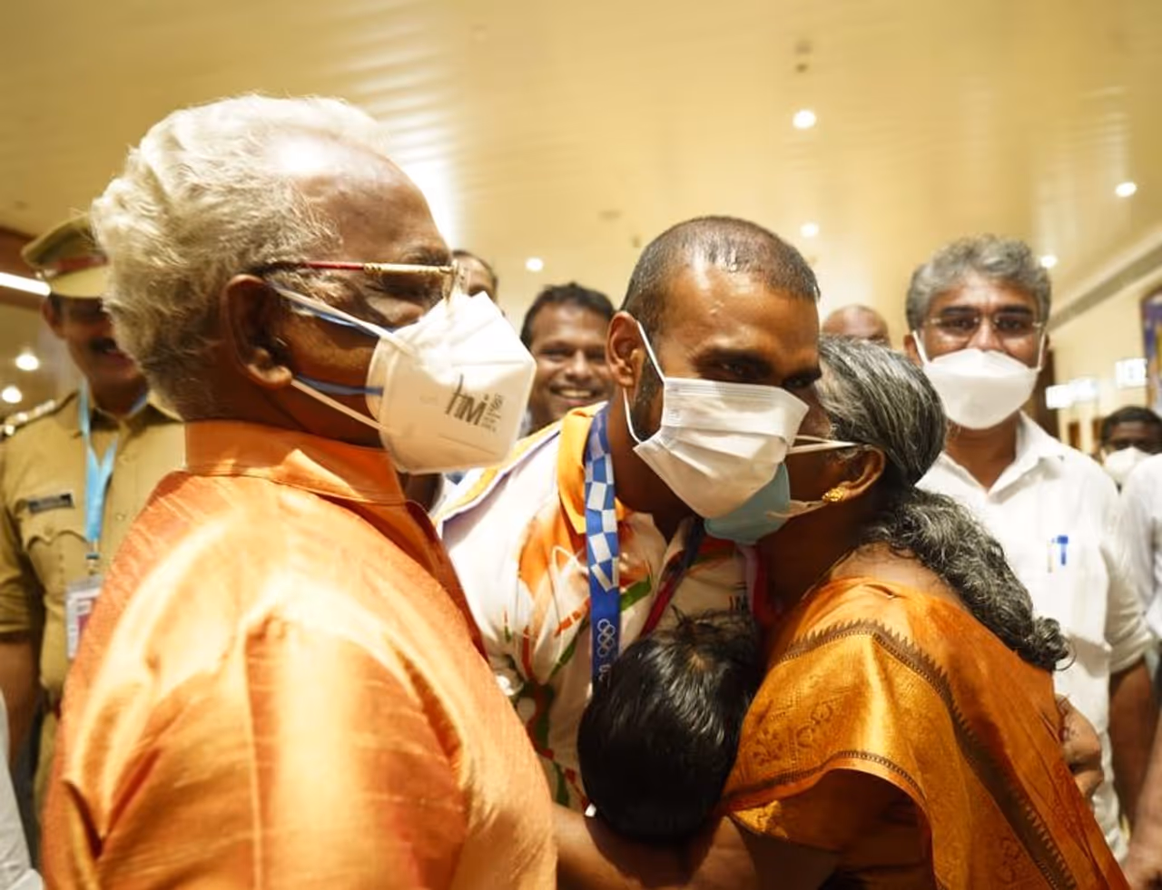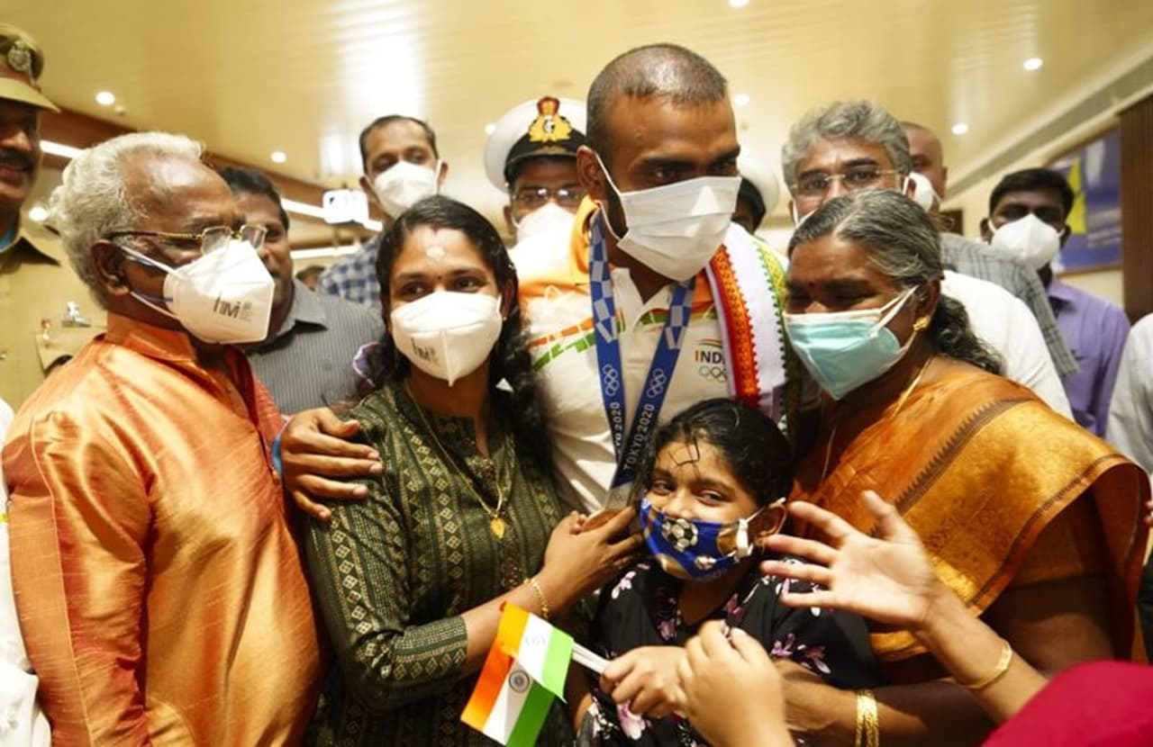 കൊച്ചി: ടോക്കിയോ ഒളിംപിക്സില് ഹോക്കിയില് നേടിയ വെങ്കല മെഡല് അച്ഛന്റെ കഴുത്തിലണിഞ്ഞ് പി ആര് ശ്രീജേഷ്. ഇന്ന് വൈകിട്ട് അഞ്ച് മണിയോടെ നെടുമ്പാശേരി വിമാനത്താവളത്തിലിറങ്ങിയ ശ്രീജേഷിനെ സ്വീകരിക്കാന് അച്ഛന് പി ആര് രവീന്ദ്രനും കുടുംബാംഗങ്ങളും എത്തിയിരുന്നു. വിമാനത്താവളത്തില്വെച്ചുതന്നെ ശ്രീജേഷ് മെഡല് അച്ഛന്റെ കഴുത്തിലണിഞ്ഞു.