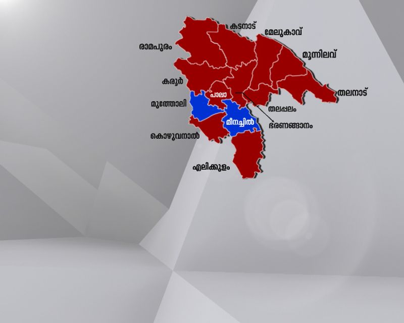 രാമപുരം, കടമാട്, മേലുകാവ്, മൂന്നിലവ്, തലനാട്, തലപ്പലം, ഭരണങ്ങാനം, കരൂർ, മുത്തോലി, പാലാ, മീനച്ചിൽ, കൊഴുവനാൽ, എലിക്കുളം എന്നിങ്ങനെ നഗരസഭയും പഞ്ചായത്തുകളുമായി 13 തദ്ദേശഭരണകേന്ദ്രങ്ങളുണ്ട് പാലാ നിയമസഭാ മണ്ഡലത്തിൽ. ഇതിൽ മുത്തോലിയും മീനച്ചിലും മാത്രമാണ് യുഡിഎഫിന് നിലനിർത്താനായത്. മറ്റെല്ലാ പഞ്ചായത്തുകളും എൽഡിഎഫിനൊപ്പം നിന്നു.