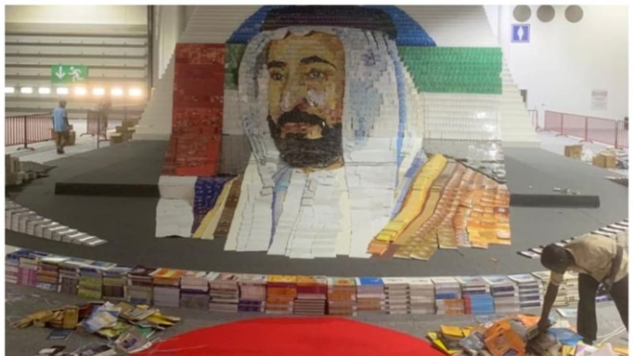പല ഭാഷകളിലുള്ള പല സാഹിത്യശാഖകളിലുള്ള ഈ പുസ്തകങ്ങൾ ഒന്നു ചേര്ന്നപ്പോൾ തെളിഞ്ഞത് ഷാര്ജ ഭരണാധികാരിയുടെ മനോഹര ചിത്രം. അക്ഷരങ്ങളെയും പുസ്തകങ്ങളെയും സ്നേഹിക്കുകയും വായനയെ പ്രോല്സാഹിപ്പിക്കുകയും ചെയ്യുന്ന ഷാര്ജ ഭരണധാധികാരിക്ക് ഏററവും ഉചിതമായ ആദരം. ഒരു ലക്ഷത്തി മുപ്പതിനായിരം പുസ്തകങ്ങളുപയോഗിച്ചാണ് ശില്പി ഡാവിഞ്ചി സുരേഷ് ഈ ത്രിമാന ചിത്രം തീര്ത്തത്. 75 അടി നീളത്തിലും നാല്പതടി വീതിയിലുമാണ് ത്രിമാന ചിത്രം ഒരുക്കിയിരിക്കുന്നത്. ഒരാഴ്ചകൊണ്ടാണ് ചിത്രം പൂര്ത്തിയാക്കിയത്