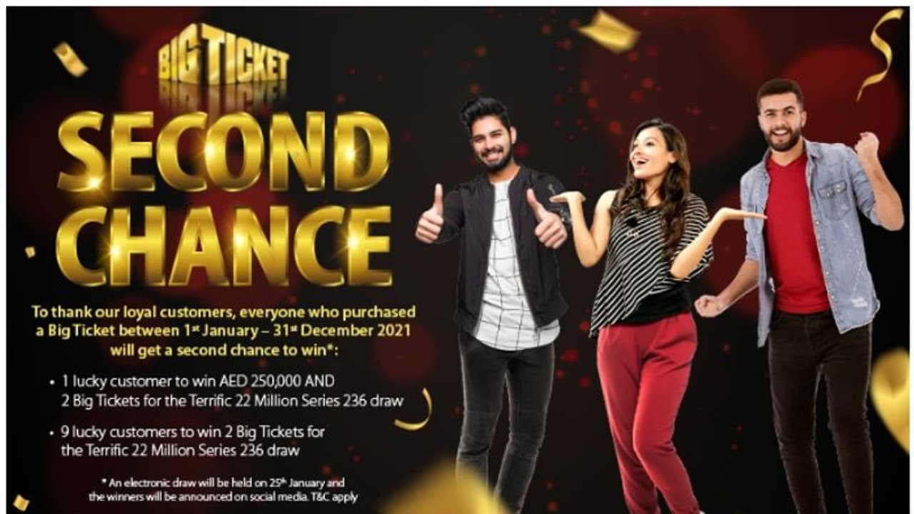 2021 ജനുവരി ഒന്ന് മുതല് ഡിസംബര് 31 വരെ ബിഗ് ടിക്കറ്റെടുത്തവര്ക്ക് വിജയിക്കാന് ഒരു അവസരം കൂടി. 'സെക്കന്റ് ചാന്സ്' സമ്മാന പദ്ധതി പ്രഖ്യാപിച്ചു.