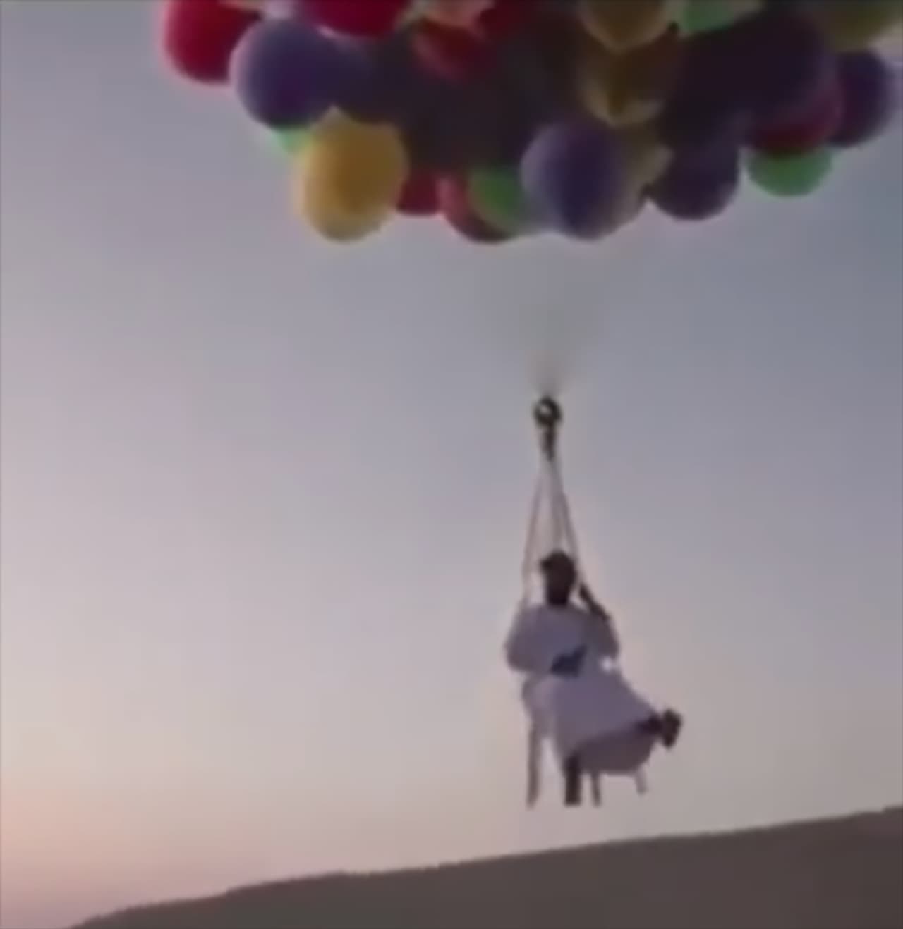 യുഎഇയില് നിന്ന് ഒമാനിലേക്ക് പറക്കുന്നുവെന്നാണ് വീഡിയോയില് പറയുന്നത്. കസേരയില് ഇരിക്കുന്നയാളുടെ മക്കളെയും കാണാം. തമാശ അല്പ്പനേരം കഴിയുമ്പോള് തന്നെ കാര്യമായി മാറുന്നു. ബലൂണ് വളരെ ഉയരത്തിലെത്തുമ്പോള് താഴെ നില്ക്കുന്നവര് പരിഭ്രാന്തരായി ഓടുന്നതും കാണാം. ഒമാന് അതിര്ത്തിയില് വെച്ച് അതിര്ത്തി സുരക്ഷാ സേനയാണ് പിന്നീട് ഇയാളെ കണ്ടെടുത്തത്. ബലൂണ് തകര്ന്ന് താഴെ വീണ് മലനിരകള്ക്കിടയില് കുടുങ്ങിക്കിടന്ന ഇയാള് ഗുരുതരാവസ്ഥയിലായിരുന്നു. ഹെലികോപ്റ്ററിലാണ് രക്ഷാ പ്രവര്ത്തകര് പിന്നീട് ഇയാളെ ആശുപത്രിയിലേക്ക് മാറ്റിയത്.
