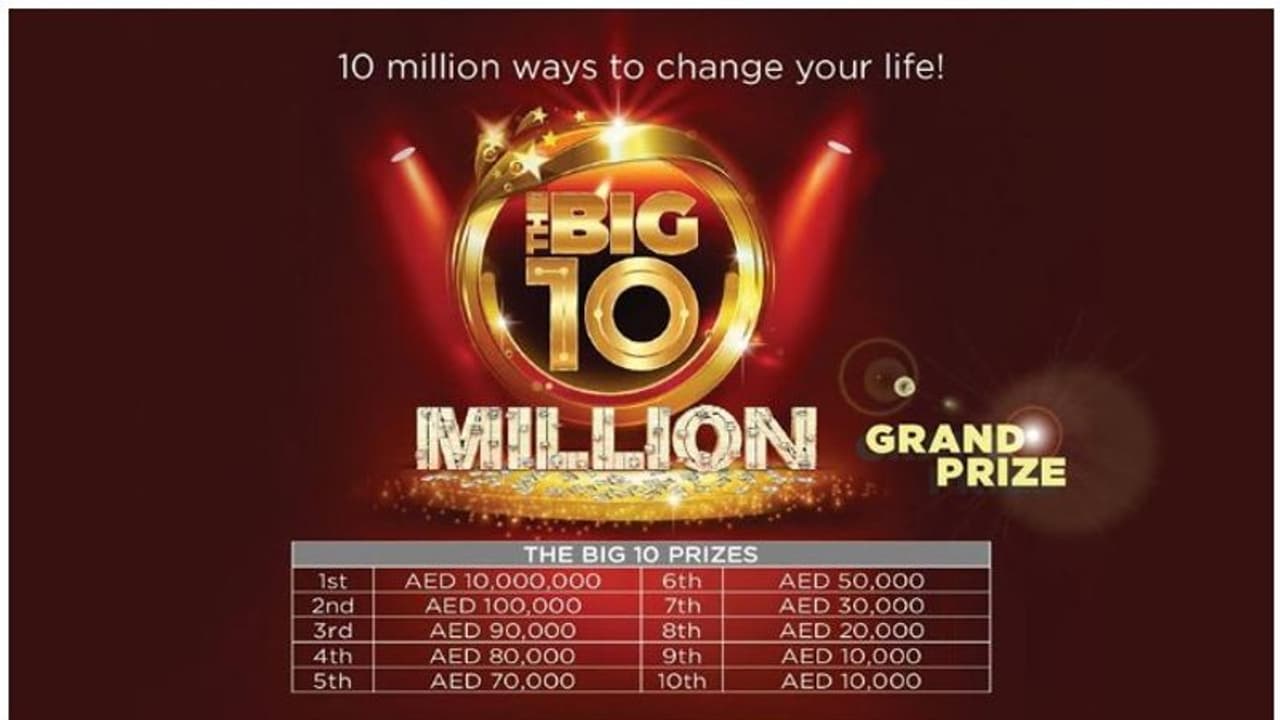 ഒന്നാം സമ്മാനത്തിന് അര്ഹനാവുന്ന ഭാഗ്യവാന് ഒരു കോടി ദിര്ഹമാണ് (20 കോടിയിലധികം ഇന്ത്യന് രൂപ) സമ്മാനമായി ലഭിക്കുക. ഒരു ലക്ഷം ദിര്ഹം മുതല് പതിനായിരം ദിര്ഹത്തില് അവസാനിക്കുന്ന മറ്റ് ഒന്പത് സമ്മാനങ്ങളുടെയും അവകാശികളെ ഈ നറുക്കെടുപ്പിലൂടെ കണ്ടെത്തും. ഇതിന് പുറമെ ബി.എം.ഡബ്ല്യൂ 11 സീരിസ്, ജീപ്പ് ഗ്രാന്റ് ഷെരോക് സീരീസ് 2 എന്നീ ആംഡംബര കാറുകളും ഭാഗ്യവാന്മാരെ കാത്തിരിക്കുകയാണ്.