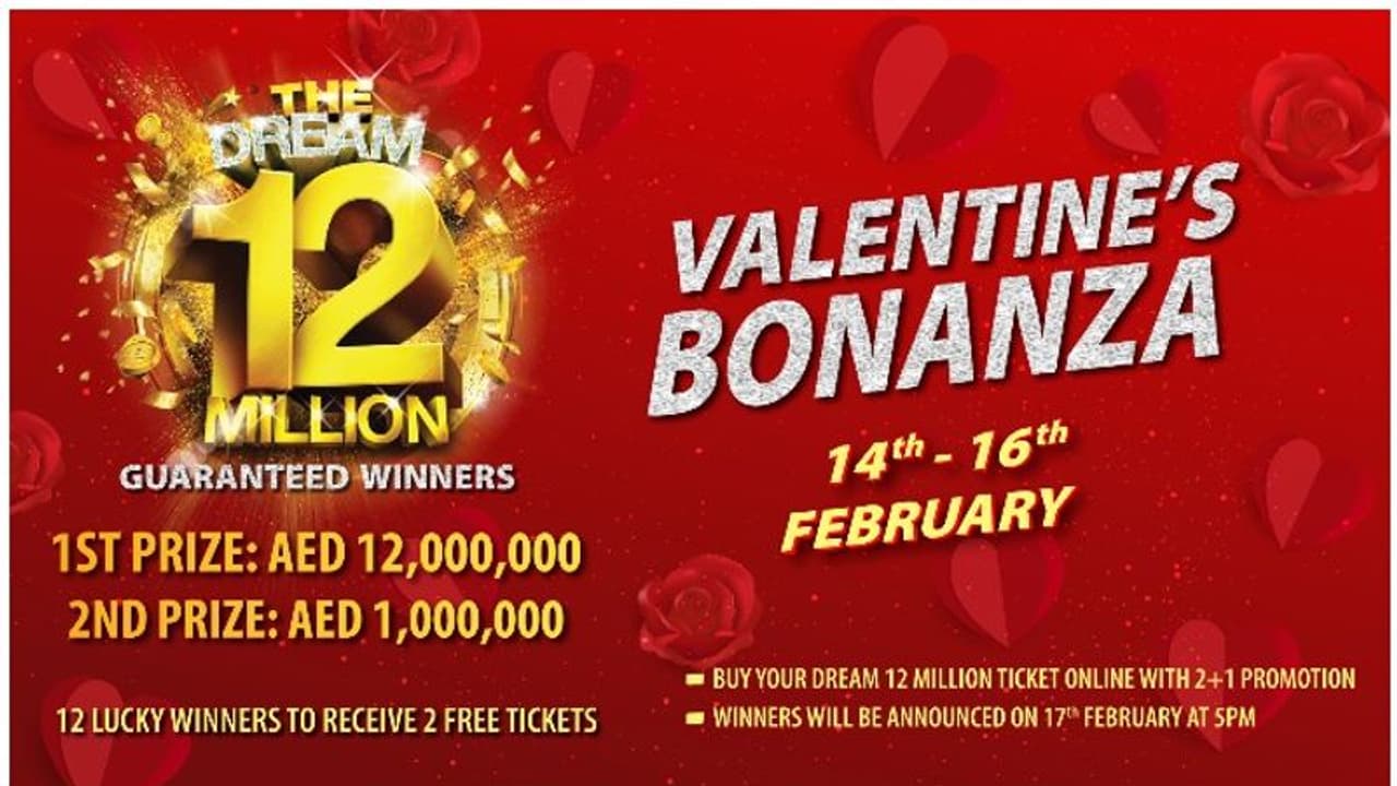 ഫെബ്രുവരി 14 രാത്രി 12 മണി മുതല് ഫെബ്രുവരി 16 രാത്രി 11.59 വരെയാണ് ഈ ഓഫറിന്റെ കാലാവധി. ഇക്കാലയളവില് ബിഗ് ടിക്കറ്റിന്റെ ബൈ ടു ഗെറ്റ് വണ് ഫ്രീ ഓഫറിലൂടെ രണ്ട് ടിക്കറ്റുകള് വാങ്ങുന്നതില് നിന്ന് തെരഞ്ഞെടുക്കുന്ന 12 ഭാഗ്യശാലികള്ക്ക് ബിഗ് ടിക്കറ്റിന്റെ ഡ്രീം 12 മില്യന് നറുക്കെടുപ്പിലേക്കുള്ള രണ്ട് ടിക്കറ്റുകള് കൂടി സൗജന്യമായി ലഭിക്കും.