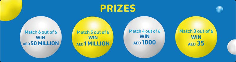 നറുക്കെടുപ്പുകളില് തെരഞ്ഞെടുക്കപ്പെടുന്ന ആറ് സംഖ്യകളും യോജിച്ചുവരുന്ന വിജയികള്ക്ക് 50 മില്യന് ദിര്ഹത്തിന്റെ ഒന്നാം സമ്മാനം വീതിച്ചെടുക്കാം. ഒരു മില്യന് ദിര്ഹമാണ് രണ്ടാം സമ്മാനം. നറുക്കെടുക്കപ്പെടുന്ന ആറ് സംഖ്യകളില് അഞ്ചു സംഖ്യകള് യോജിച്ചുവരുന്നവരായിരിക്കും ഈ സമ്മാനത്തുകയുടെ അവകാശികള്. പങ്കെടുക്കുന്നവരുടെ എണ്ണത്തിനനുസരിച്ച് ലഭിക്കുന്ന തുകയിലും വര്ദ്ധനവുണ്ടാകാം. നാല് സംഖ്യകള് യോജിച്ചുവരുന്നവര്ക്ക് 1000 ദിര്ഹമാണ് സമ്മാനം. മൂന്ന് സംഖ്യകള് ശരിയായാല് 35 ദിര്ഹവും ലഭിക്കുമെന്ന് തെരേസ സ്റ്റാര് പറഞ്ഞു.
