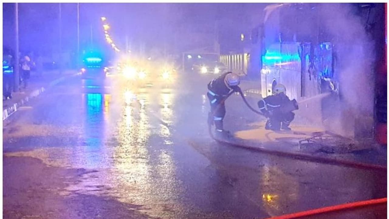ദേശീയ ഗതാഗത കമ്പനിയായ മവാസലാത്തിന്റെ ഇന്റര് സിറ്റി ബസിനാണ് വെള്ളിയാഴ്ച വൈകുന്നേരം ഏഴ് മണിയോടെ തീ പിടിച്ചത്.