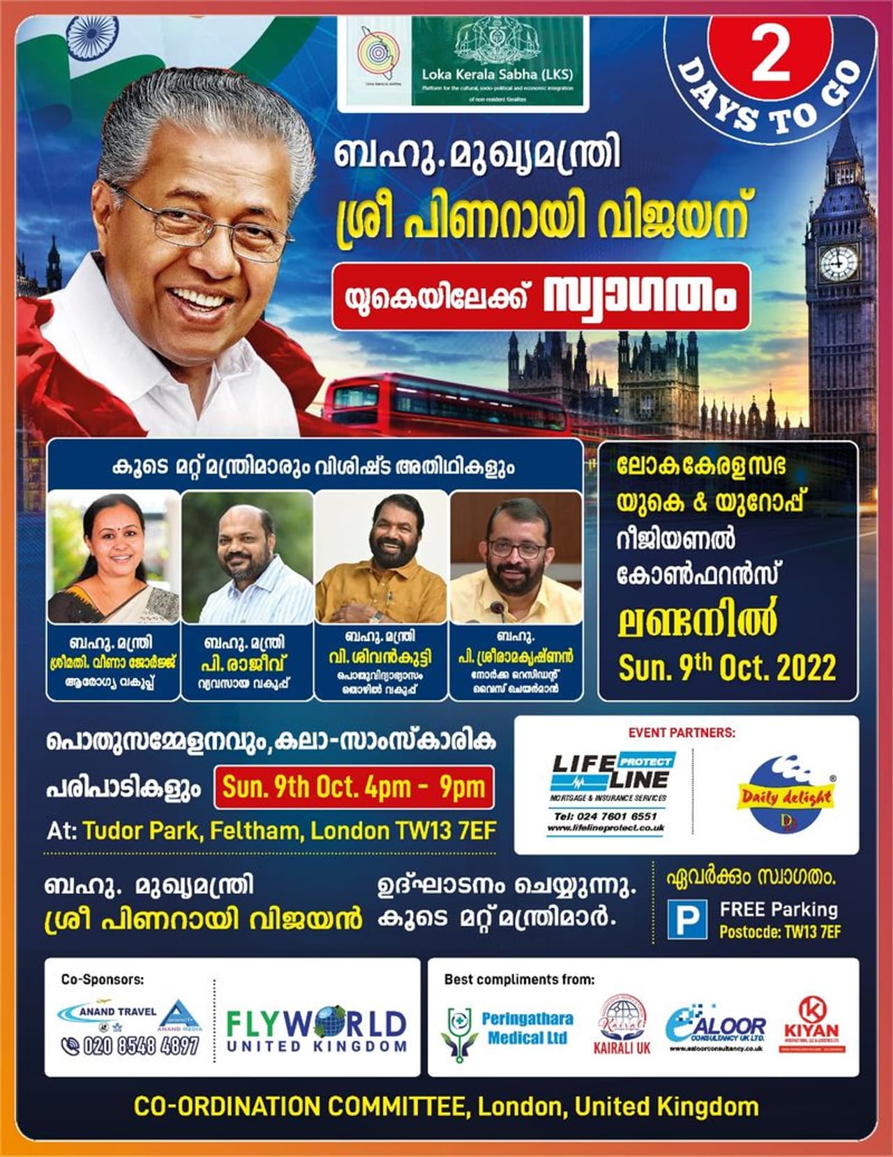 ലണ്ടന്: ലോക കേരള സഭയുടെ ഭാഗമായുള്ള യൂറോപ്പ് - യു.കെ മേഖലാ സമ്മേളനം ഒക്ടോബര് 9ന് ലണ്ടനില് നടക്കും. ലണ്ടനിലെ സെന്റ് ജെയിംസ് കോര്ട്ട് ഹോട്ടലില് ചേരുന്ന മേഖലാ സമ്മേളനം രാവിലെ 9ന് (ഇന്ത്യന് സമയം ഉച്ചയ്ക്ക് 1. 30ന്) മുഖ്യമന്ത്രി പിണറായി വിജയന് ഉദ്ഘാടനം ചെയ്യും. കഴിഞ്ഞ ജൂണില് തിരുവനന്തപുരത്തു ചേര്ന്ന മൂന്നാം ലോക കേരള സഭയില് ഉയര്ന്ന നിര്ദ്ദേശങ്ങള് നടപ്പിലാക്കുന്നതിനോടോപ്പം ലോക കേരള സഭയുടെ പ്രവര്ത്തനങ്ങള് വിപുലപ്പെടുത്താനും ലക്ഷ്യമിട്ടാണ് സമ്മേളനം ചേരുന്നതെന്ന് നോര്ക്ക റൂട്ട്സ് പുറത്തിറക്കിയ വാര്ത്താക്കുറിപ്പില് അറിയിച്ചു.
