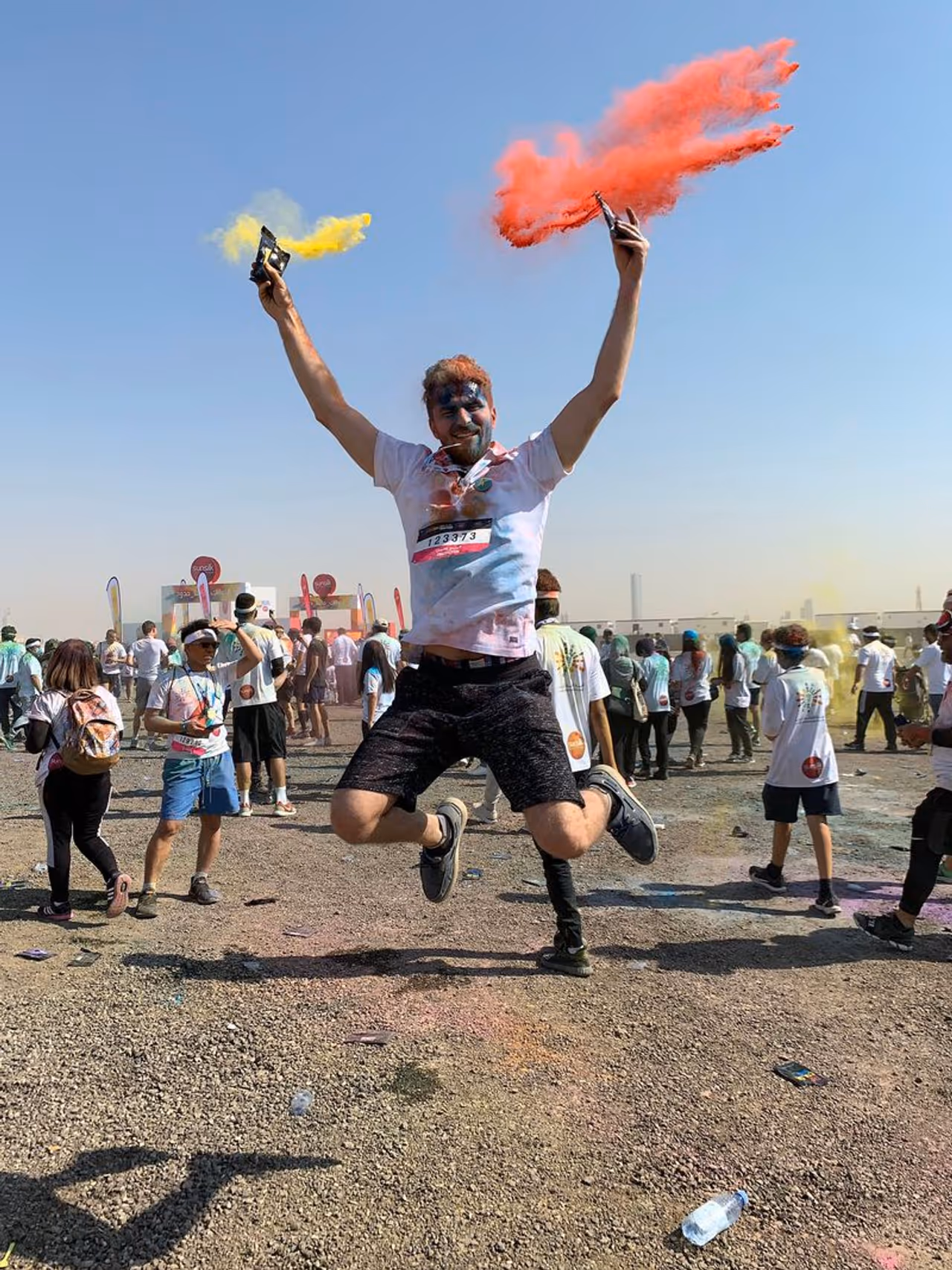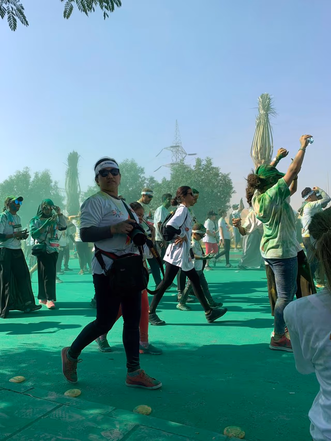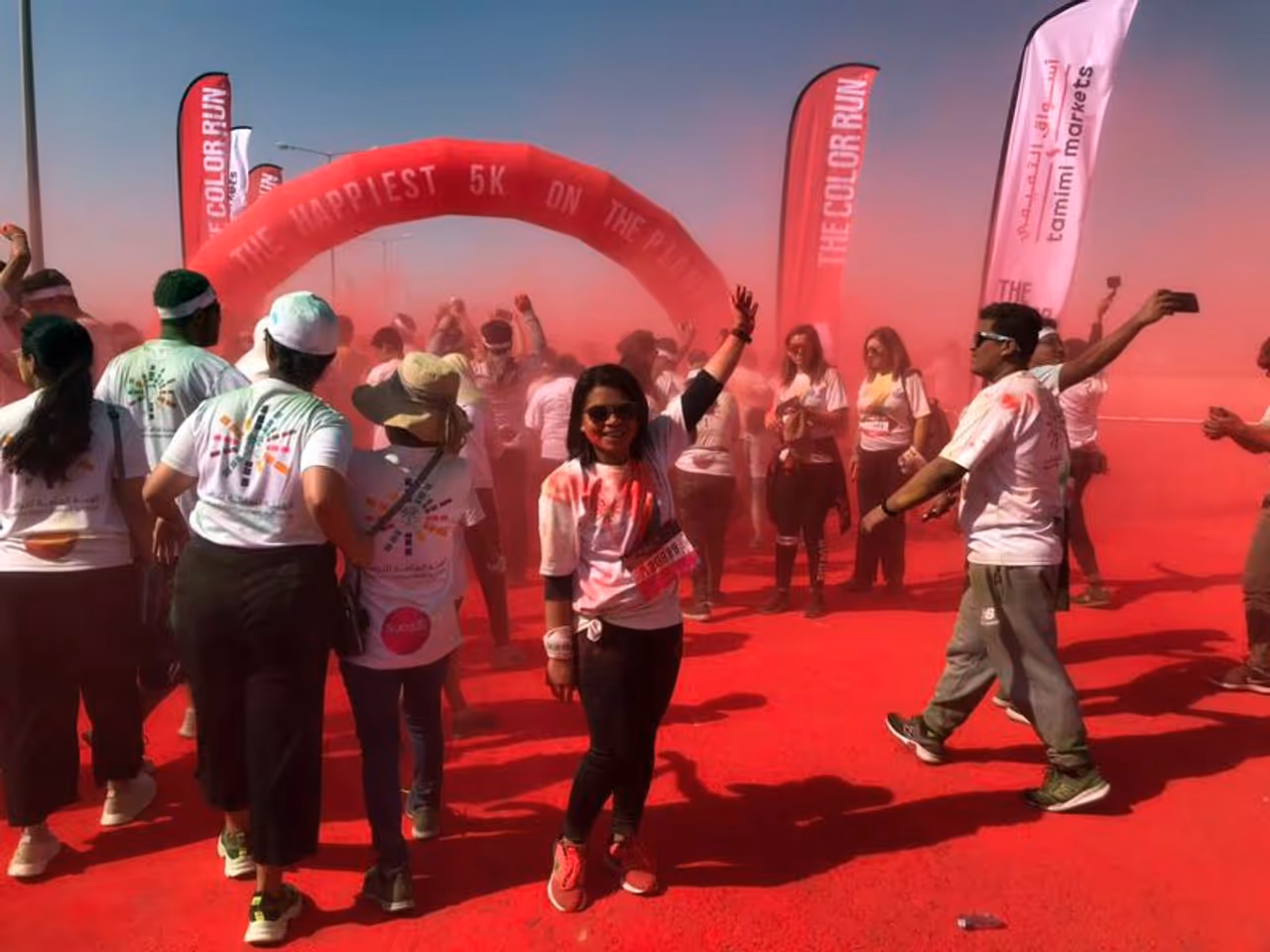 മുന്കൂട്ടി രജിസ്റ്റര് ചെയ്ത ആയിരങ്ങള് അതിരാവിലെ തന്നെ എത്തിയിരുന്നു. ഹെഡ് ബാന്ഡും വെള്ള ടീഷര്ട്ടും ചെസ്റ്റ് നമ്പറും ലോഗോയും അണിഞ്ഞ് യുവതീയുവാക്കളും കുട്ടികളും പ്രായമേറിയവരും അണിനിരന്നു. പെട്ടെന്നാണ് നീലനിറത്തിലെ പൊടി എവിടെയൊക്കേയോ നിന്ന് അന്തരീക്ഷത്തില് ചീറ്റിത്തെറിച്ചത്.