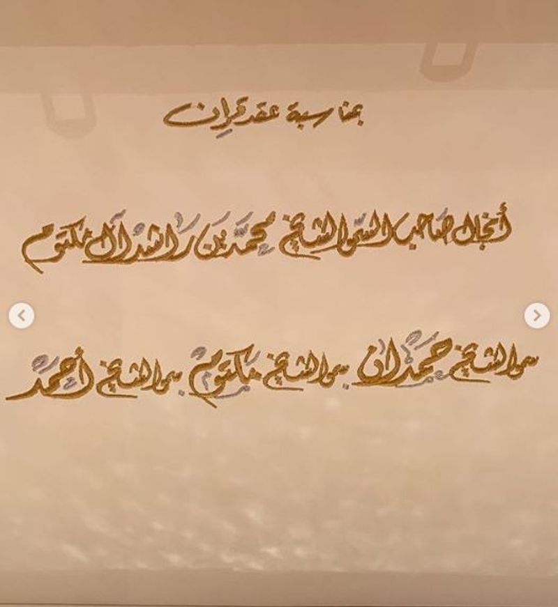 സ്വകാര്യ ചടങ്ങളില് വെച്ചുനടന്ന വിവാഹത്തിന്റെ വീഡിയോ ദൃശ്യങ്ങള് പിന്നീട് സോഷ്യല് മീഡിയയില് പ്രചരിച്ചിരുന്നു. എന്നാല് വിവാഹ ചടങ്ങിലേക്ക് ക്ഷണിച്ചുകൊണ്ട് അതിഥികള്ക്ക് നല്കിയ ക്ഷണക്കത്താണ് ഇപ്പോള് അറബ് ലോകത്ത് സോഷ്യല് മീഡിയയിലെ താരം.