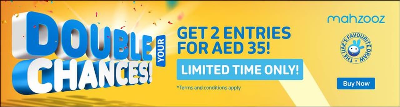 പരിമിതമായ കാലയളവിലേക്കുള്ള പുതിയ ഓഫര് സെപ്തംബര് 24ന് തുടങ്ങി. 35 ദിര്ഹം മുടക്കി വാങ്ങുന്ന ഒരു മഹ്സൂസ് ബോട്ടില്ഡ് വാട്ടറിലൂടെ ഉപഭോക്താക്കള്ക്ക് നറുക്കെടുപ്പില് പങ്കെടുക്കാനുള്ള രണ്ട് എന്ട്രികള് ലഭിക്കുന്നു.