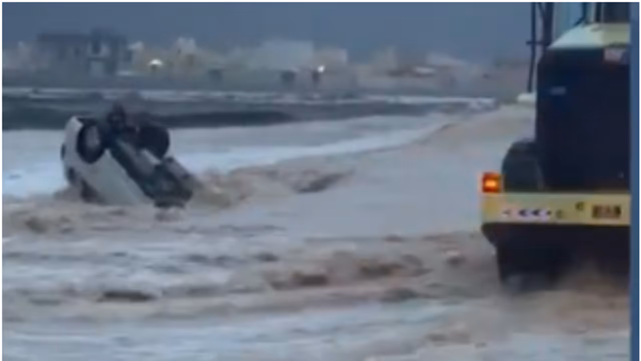 അപകടവിവരം ലഭിച്ച ഉടൻ സിവിൽ ഡിഫൻസ് ആൻഡ് ആംബുലൻസ് അതോറിറ്റി സംഘങ്ങൾ സ്ഥലത്തെത്തി നടത്തിയ അതിവേഗ രക്ഷാപ്രവർത്തനത്തിലൂടെയാണ് ഡ്രൈവറുടെ ജീവൻ രക്ഷപ്പെടുത്തിയത്. തുടർന്ന് സംഭവത്തിൽ ഗുരുതര അശ്രദ്ധ കാട്ടിയെന്ന കാരണത്താൽ ഡ്രൈവറെ പൊലീസ് അറസ്റ്റ് ചെയ്യുകയുമുണ്ടായി. വടക്കൻ ഗവർണറേറ്റുകളിലുടനീളം തുടർച്ചയായി പെയ്യുന്ന കനത്ത മഴയാണ് അപകടത്തിന് പശ്ചാത്തലമായത്. നിലവിലെ കാലാവസ്ഥാ സാഹചര്യങ്ങൾ പ്രദേശത്ത് ആശങ്ക ഉയർത്തുകയാണ്. വ്യാപകമായ മേഘാവരണം ദൃശ്യപരിധി കുറയ്ക്കുന്നതിനും താപനിലയിൽ മാറ്റങ്ങൾ ഉണ്ടാകുന്നതിനും കാരണമായി. ചില ഇടങ്ങളിൽ ഇടത്തരം മുതൽ ശക്തമായ മഴ വരെ രേഖപ്പെടുത്തി.