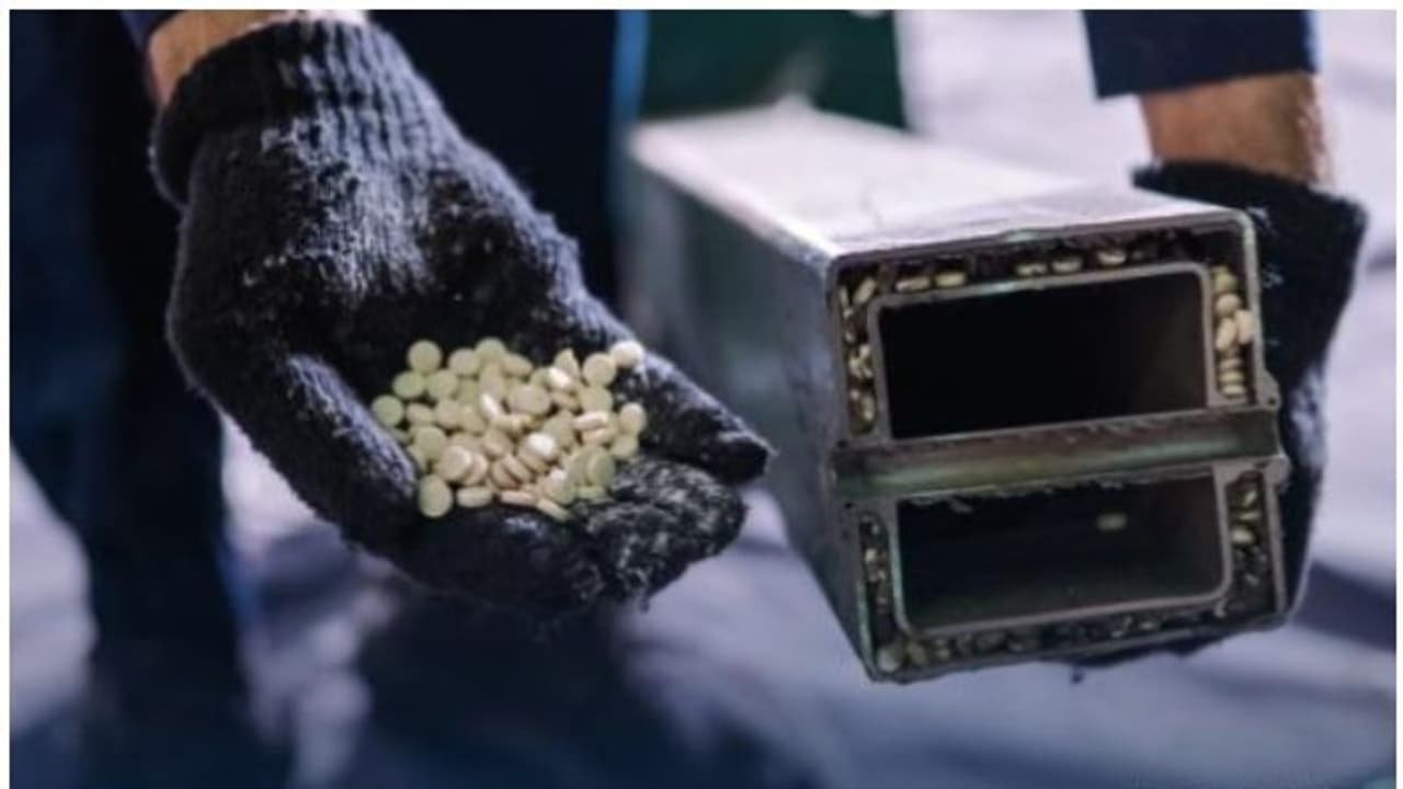 അത്യാധുനിക സുരക്ഷാ പരിശോധനാ സംവിധാനം ഉപയോഗിച്ചുള്ള നിരീക്ഷണത്തിലാണ് ഇരുമ്പ് ദണ്ഡിനുള്ളില് ഒളിപ്പിച്ച നിലയില് ലഹരി ഗുളികകള് കണ്ടെത്തിയത്.