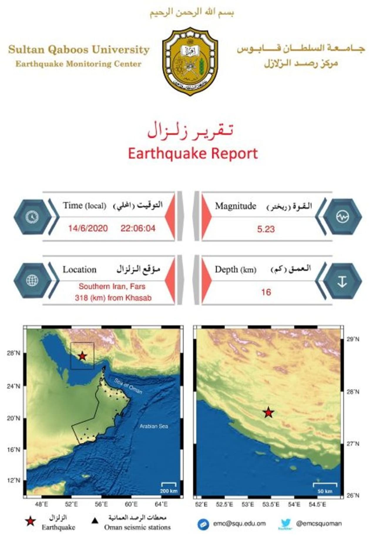 മസ്കറ്റ്: ഒമാനിലെ ഖസബിനടുത്ത് ഭൂമികുലുക്കം റിപ്പോര്ട്ട് ചെയ്തു. ഇന്നലെ രാത്രി (14/06/20) ഒമാന് പ്രാദേശിക സമയം 10. 06ന് ഖസബില് നിന്നും 318 കിലോമീറ്റര് അകലെ റിക്ടര് സ്കെലില് 5 .23ശതമാനം ഭൂചലനം അനുഭവപ്പെട്ടതായി സുല്ത്താന് ഖാബൂസ് സര്വകലാശാലയിലെ ഭൂകമ്പ പഠന കേന്ദ്രത്തിന്റെ അറിയിപ്പില് പറയുന്നു. ഒരേ ദിവസം ഈ കേന്ദ്രത്തിലുണ്ടാകുന്ന മൂന്നാമത്തെ ഭൂചലമാണെന്ന് ഭൂകമ്പ പഠനകേന്ദ്രം വ്യക്തമാക്കി.