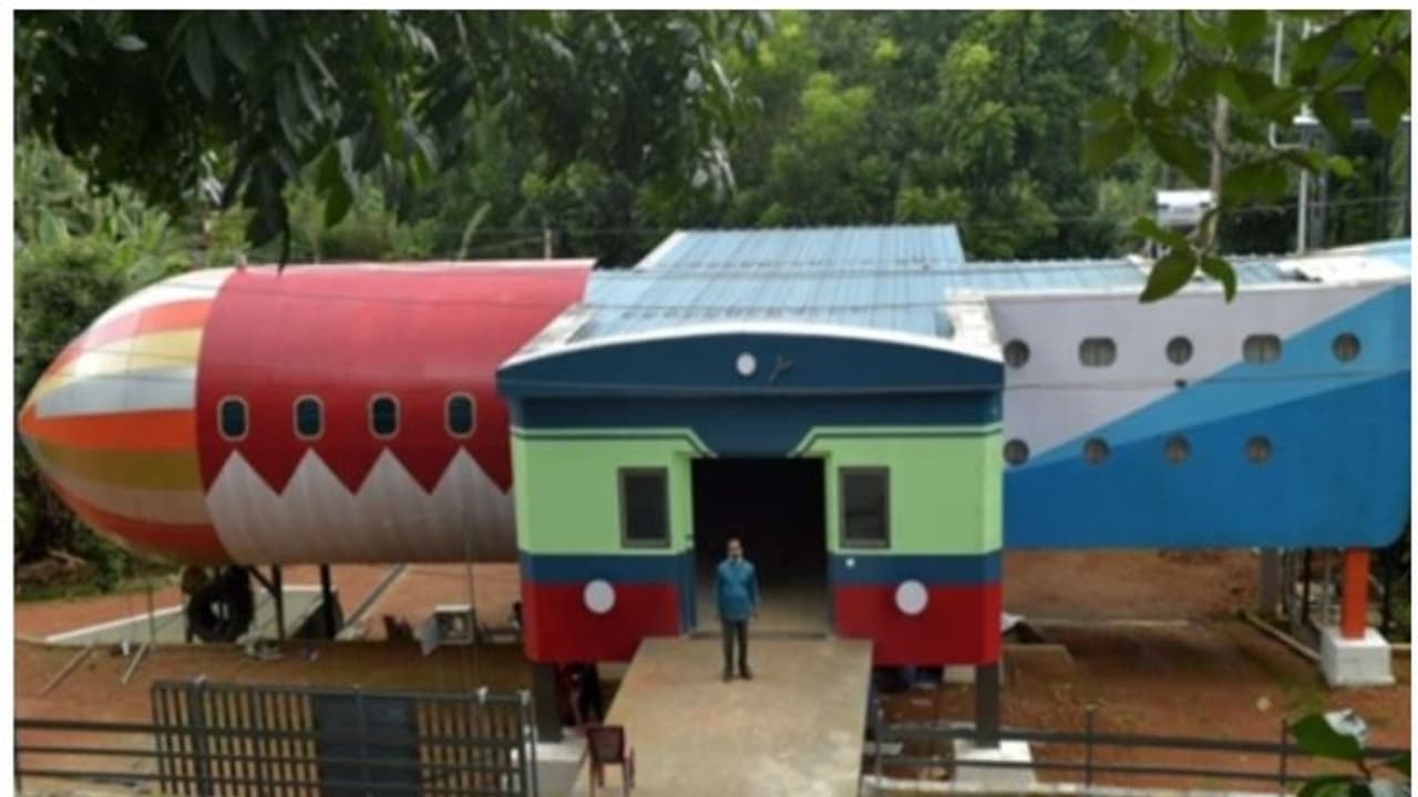മൂന്ന് കിടപ്പുമുറികള്, നാല് ശുചിമുറികള്, ഒരു ഹാള്, അടുക്കള എന്നിവയാണ് ഈ വീട്ടിലുള്ളത്. ഒരു മുറിയുടെ ബാല്ക്കണി വിമാനത്തിന്റെ കോക്പിറ്റിന്റെ മാതൃകയിലാണ് നിര്മ്മിച്ചത്. വീടിന്റെ പ്രവേശന കവാടം ആകട്ടെ ട്രെയിനും!