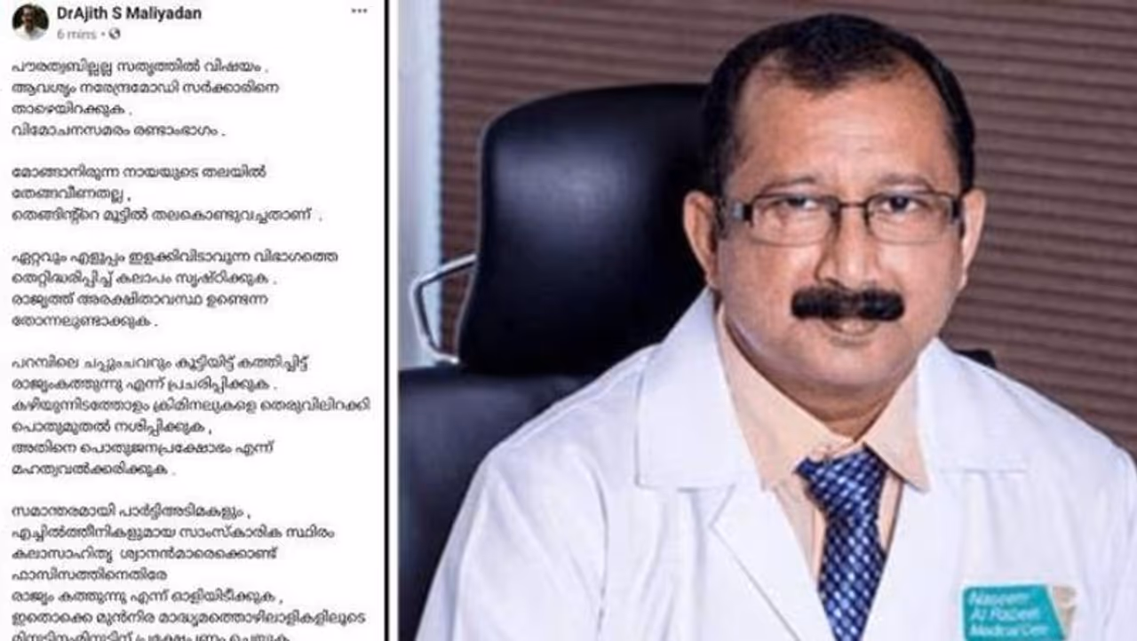 ഖത്തറിലെ സ്വകാര്യ ആശുപത്രിയില് ഡോക്ടറായി ജോലി ചെയ്യുകയായിരുന്നു അജിത്കുമാർ. ഫേസ്ബുക്ക് പോസ്റ്റ് വിവാദമായതോടെ ആശുപത്രി അധികൃതർ വിശദീകരണം ആവശ്യപ്പെടുകയും ഡോക്ടർ മാപ്പ് പറയുകയും ചെയ്തിരുന്നു. എന്നാൽ, ആശുപത്രിയിൽനിന്ന് ഡോക്ടറെ പിരിച്ചുവിടണമെന്ന ആവശ്യം ശക്തമായതോടെ അജിത് സ്വയം രാജിവയ്ക്കുകയായിരുന്നു.
