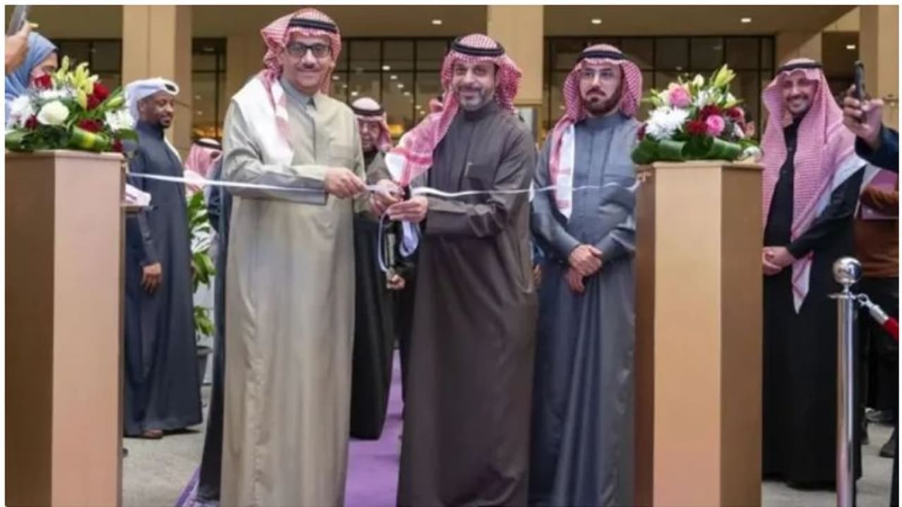(ഫോട്ടോ: സൗദി അറേബ്യയിലെ ആദ്യത്തെ ആർട്സ് കോളജ് സാംസ്കാരിക വകുപ്പ് ഡെപ്യൂട്ടി മന്ത്രി ഹാമിദ് ബിൻ മുഹമ്മദ് ഫയാസും സർവകലാശാല മേധാവി ഡോ. ബദ്റാൻ അൽഉമറും ചേർന്ന് ഉദ്ഘാടനം ചെയ്യുന്നു)
