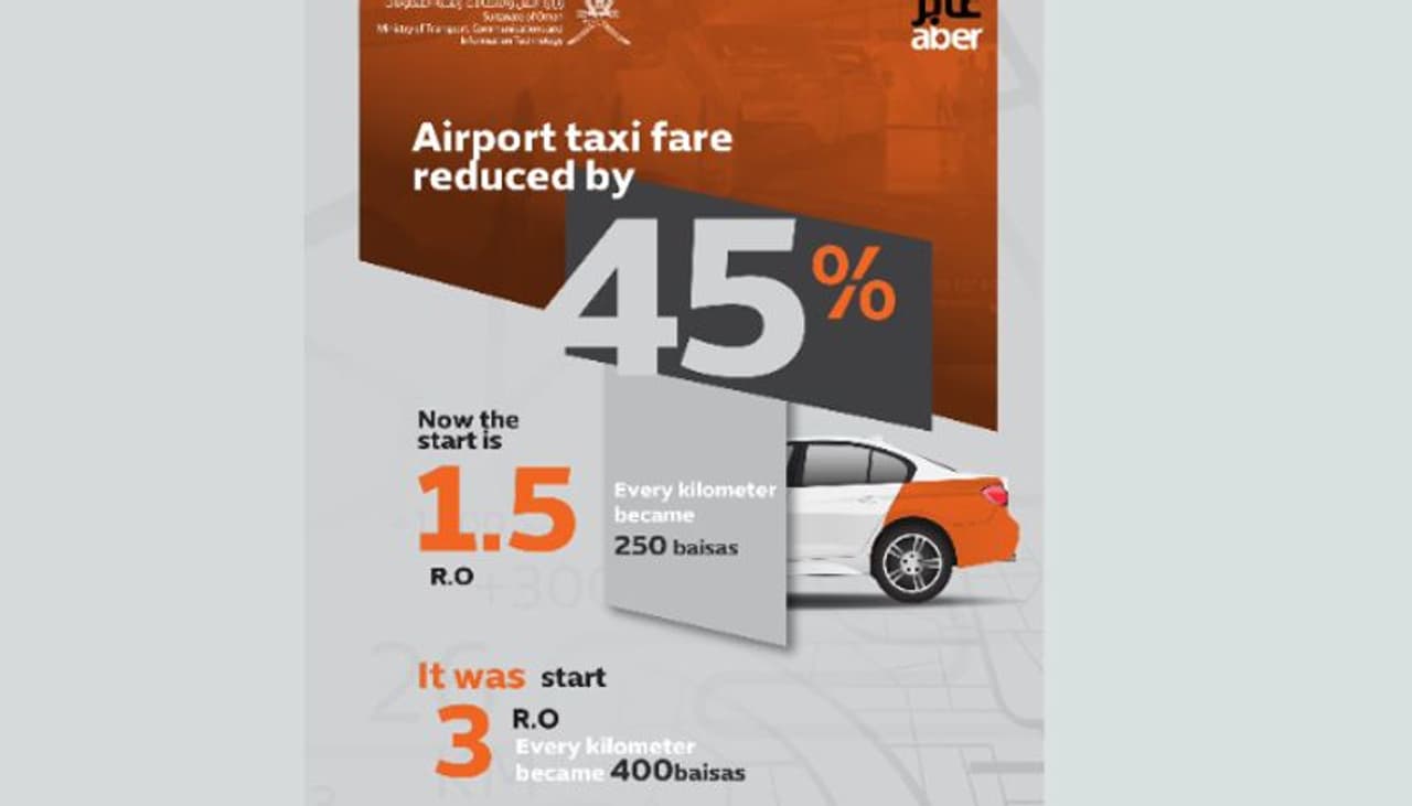 ആപ്പുകൾ വഴി ബുക്ക് ചെയ്യുന്ന ടാക്സികളുടെ നിരക്കിൽ 45% ഇളവാണ് ഒമാൻ ഗതാഗത, വിവര സാങ്കേതിക മന്ത്രാലയം പ്രഖ്യാപിച്ചിട്ടുള്ളത്.