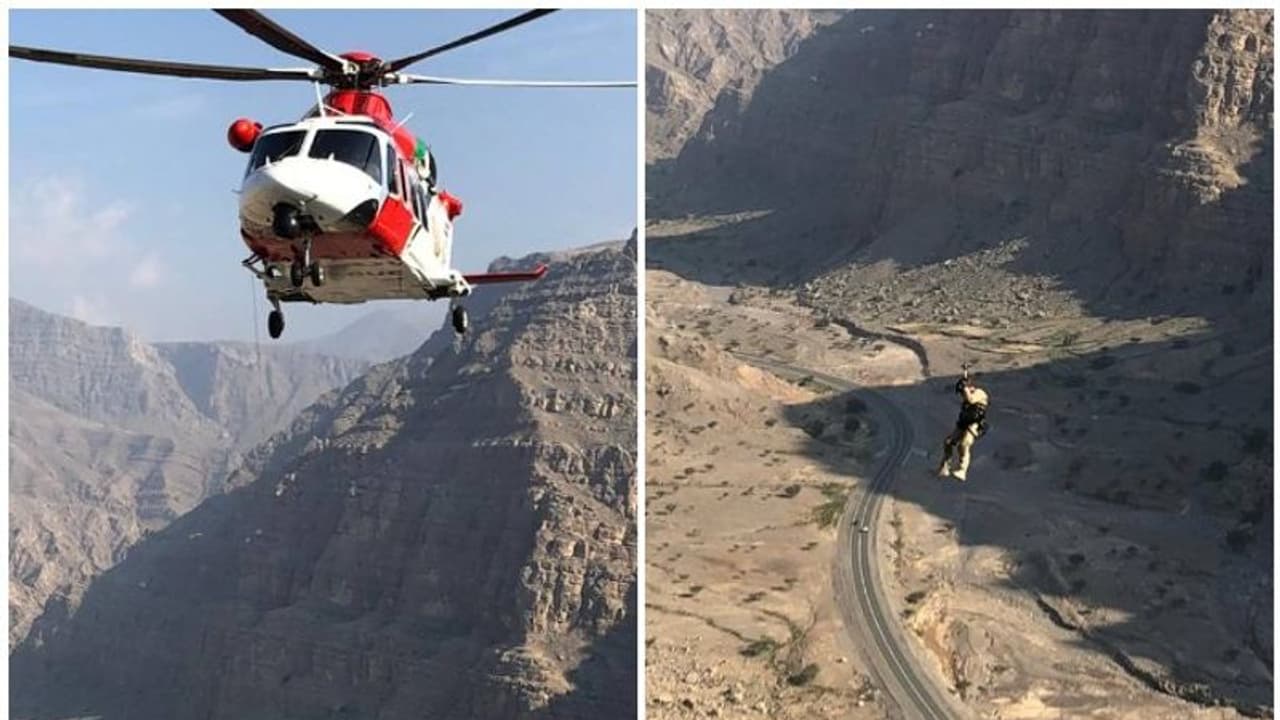 കാലിന് പരിക്കേറ്റ നിലയിലാണെന്ന് മനസിലാക്കിയതോടെ പ്രത്യേക സംവിധാനങ്ങളുപയോഗിച്ച് ഇയാള് എവിടെയാണുള്ളതെന്ന് പൊലീസ് സംഘം കണ്ടെത്തി. തുടര്ന്ന് നാഷണല് സെര്ച്ച് ആന്റ് റെസ്ക്യൂ സെന്ററിന്റെ സഹായത്തോടെ ഹെലികോപ്റ്ററില് രക്ഷാപ്രവര്ത്തകരെത്തി കല്ബ ആശുപത്രിയിലേക്ക് മാറ്റി.