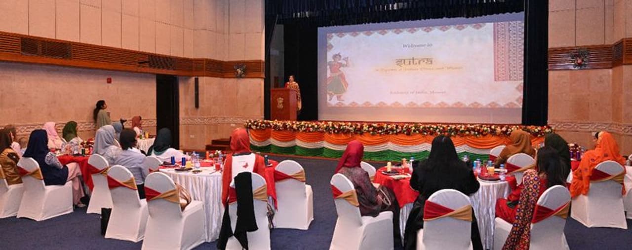 മസ്കറ്റ്: ഇന്ത്യയുടെ ചടുലമായ നൃത്ത-വസ്ത്രപാരമ്പര്യങ്ങള് പ്രദര്ശിപ്പിക്കുന്നതിനായി 'സൂത്ര' എന്ന പേരില് ഒരു പ്രത്യേക പരിപാടി മസ്കറ്റ് ഇന്ത്യന് എംബസ്സിയില് സംഘടിപ്പിച്ചു.