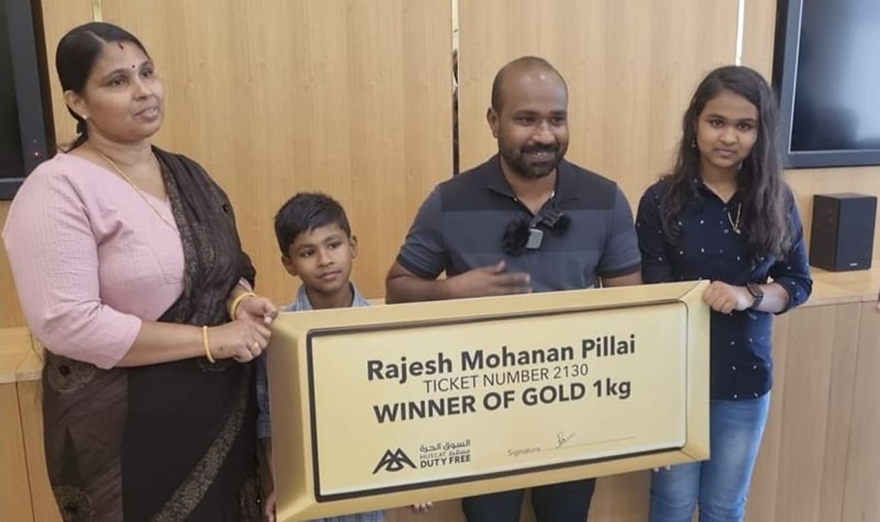 മസ്കറ്റ്: മസ്കറ്റ് ഡ്യൂട്ടി ഫ്രീ നടത്തിയ ഗോൾഡ് റാഫിൾ ഡ്രോയിൽ ഇത്തവണയും സമ്മാനം കരസ്ഥമാക്കി മലയാളികള്. കൊല്ലം കൊട്ടാരക്കര സ്വദേശി രാജേഷ് മോഹനൻ പിള്ളക്ക് ഒരു കിലോ സ്വർണ്ണമാണ് സമ്മാനമായി ലഭിച്ചത്. മസ്കറ്റ് ഡ്യൂട്ടി ഫ്രീ ആസ്ഥാനത്ത് നടന്ന ചടങ്ങില് വിജയികള്ക്ക് അധികൃതര് സമ്മാനം കൈമാറി.