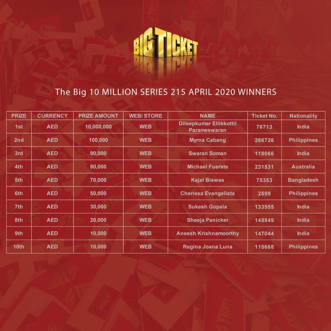 അജ്മാനില് താമസിക്കുന്ന ദിലീപ് ഏപ്രില് 14ന് എടുത്ത 76713 എന്ന നമ്പറിലുള്ള ടിക്കറ്റിലൂടെയാണ് കോടികളുടെ ഭാഗ്യം അദ്ദേഹത്തെ തേടിയെത്തിയത്. ഡ്രീം കാര് പതിനൊന്നാം സീരീസില് വിജയിയായ ഇന്ത്യക്കാരന് സുബോധ് സുധാകരന് ബിഎംഡബ്ല്യൂ കാര് സ്വന്തമാക്കി.