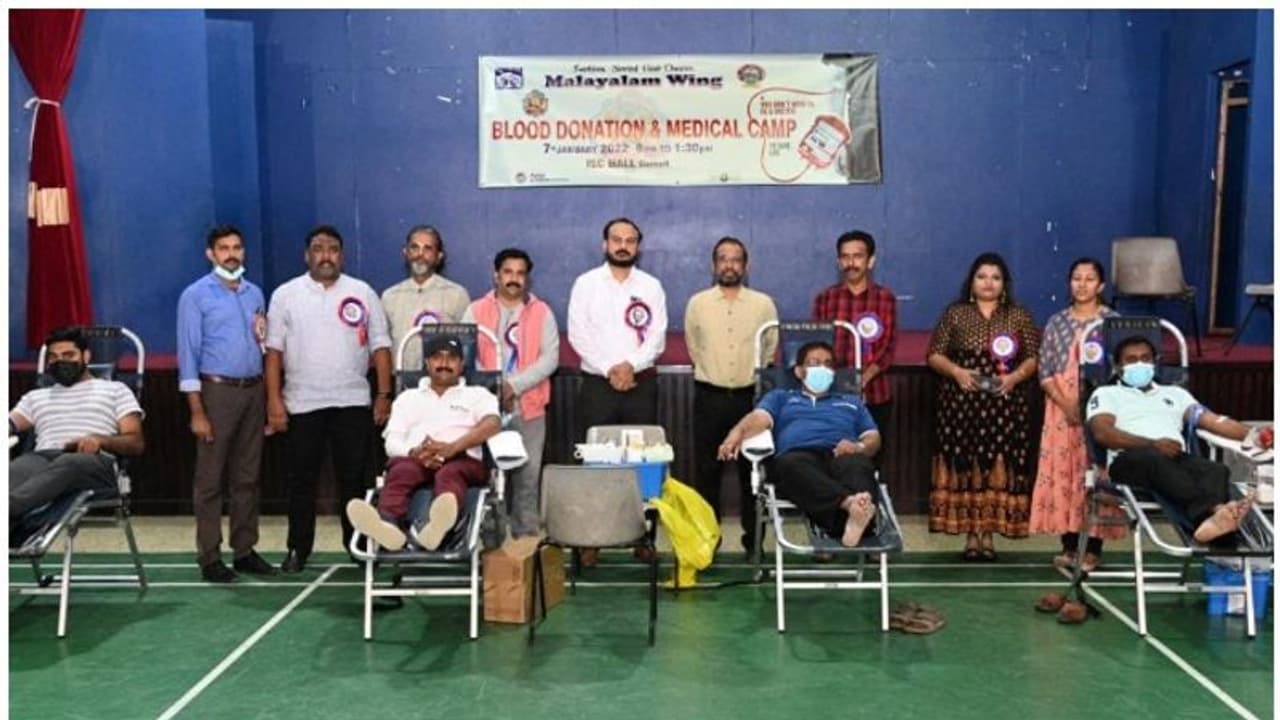 മസ്കറ്റ്: ഒമാനില് മസ്കറ്റ് ഇന്ത്യൻ സോഷ്യൽ ക്ലബ് (Muscat Indian Social Club) മലയാള വിഭാഗത്തിന്റെ നേതൃത്വത്തില് രക്തദാന ക്യാമ്പ് (Blood donation camp) സംഘടിപ്പിച്ചു. ക്യാമ്പിനോടനുബന്ധിച്ച് സൗജന്യ വൈദ്യ പരിശോധനയും (Free medical check up) ഒരുക്കിയിരുന്നു. മലയാള വിഭാഗത്തിന്റെ ഇരുപത്തിയഞ്ചാം വാർഷിക ആഘോഷങ്ങളുടെ ഭാഗമായിട്ടായിരുന്നു രക്തദാന ക്യാമ്പ് സംഘടിപ്പിച്ചിരുന്നത്.