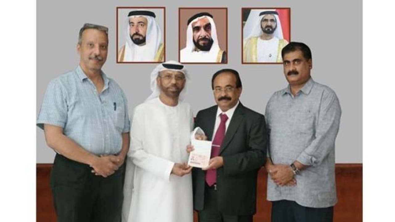 ഷാര്ജ താമസ കുടിയേറ്റ വിദേശകാര്യ വകുപ്പിലെ ഉയർന്ന ഉദ്യോഗസ്ഥനിൽ നിന്നും ജോണ് മത്തായി സ്ഥിര താമസത്തിനുള്ള അനുമതി രേഖയായ, ഗോള്ഡ് കാര്ഡ് വീസ ഏറ്റുവാങ്ങി. ഇക്കഴിഞ്ഞ ജൂണ് ആദ്യം മുതലാണ് യുഎഇയില് നിക്ഷേപകര്ക്കുള്ള 'ഗോള്ഡൻ വീസ' അനുവദിച്ചു തുടങ്ങിയത്. 37 വര്ഷത്തിലധികമായി യുഎഇയുടെ ഓട്ടോമൊബൈല് മേഖലയില് സജീവ സാന്നിധ്യമാണ് ധന്യ ഗ്രൂപ്പ്.