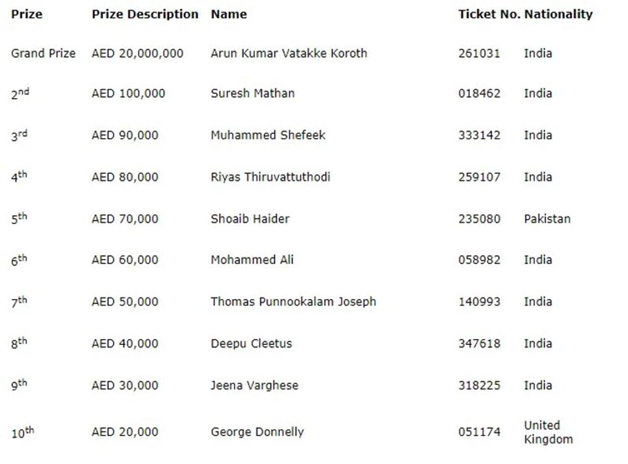 ബിഗ് ടിക്കറ്റ് ഗ്രാൻഡ് പ്രൈസ് 20 മില്യൺ ദിര്ഹം സ്വന്തമാക്കി ഇന്ത്യക്കാരൻ. അരുൺ കുമാര് വടക്കേ കോറോത്ത് ആണ് ബിഗ് ടിക്കറ്റ് സീരിസ് 250 ലൈവ് നറുക്കെടുപ്പിൽ വിജയിച്ചത്.