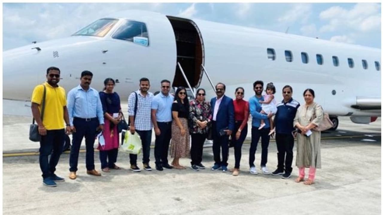 മകള് അഞ്ജുവിന്റെ വിവാഹത്തിനായി മാര്ച്ച് 15നാണ് ശ്യാമളനും കുടുംബവും ജീവനക്കാരും നാട്ടിലെത്തിയത്. ഏപ്രില് 25നായിരുന്നു മകളുടെ വിവാഹം. എന്നാല് പിന്നീട് ഇന്ത്യയില് നിന്നുള്ളവര്ക്ക് യുഎഇ വിലക്കേര്പ്പെടുത്തിയതോടെ മടക്കയാത്ര മുടങ്ങി. ഇതിനിടെയാണ് സ്വകാര്യ ജെറ്റുകള്ക്ക് അനുമതി നല്കുന്ന വിവരം അറിഞ്ഞത്.