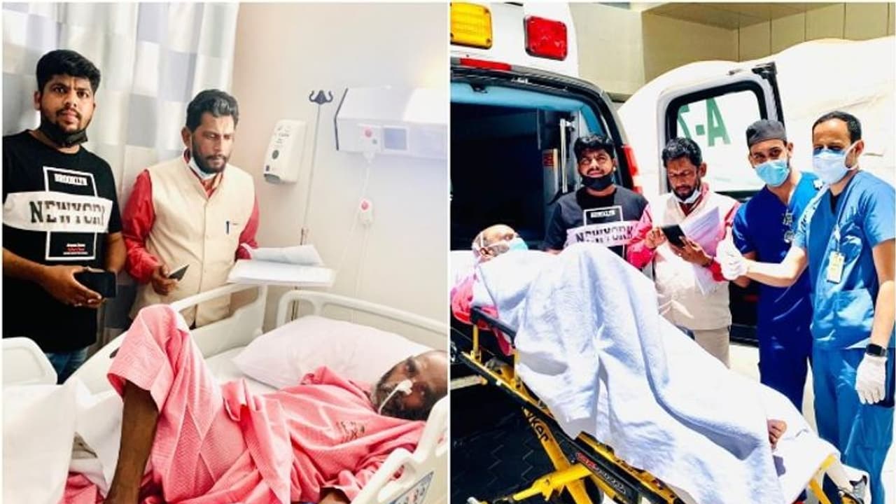 സംസാര ശേഷി നഷ്ടപ്പെട്ട ഇദ്ദേഹത്തെ കുറിച്ച് ആശുപത്രിയിലെ മലയാളി ജീവനക്കാര് നല്കിയ വിവരങ്ങള് വെച്ച് സ്പോണ്സറെ കണ്ടെത്തുകയും വിസ എക്സിറ്റ് അടിച്ചു വാങ്ങുകയുമായിരുന്നു.
