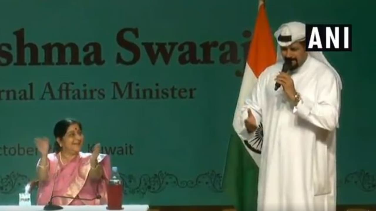 കുവൈറ്റ് സിറ്റി: രണ്ട് ദിവസത്തെ കുവൈറ്റ് സന്ദര്ശനത്തിനെത്തിയ കേന്ദ്ര വിദേശകാര്യ മന്ത്രി സുഷമാ സ്വരാജിനെ വിസ്മയിപ്പിച്ച് സ്വദേശി ഗായകന്. ഇന്നലെ നടന്ന പൊതുപരിപാടിയില് വെച്ചാണ് കുവൈറ്റി ഗായകന് മുബാറക് അല് റാഷിദ്, ഗാന്ധിജിയുടെ പ്രിയപ്പെട്ട ഭജന് കൂടിയായ വൈഷ്ണവ് ജനതോ പാടിയത്. ചടങ്ങിനെത്തിയ ഇന്ത്യക്കാര് കരഘോഷത്തോടെയാണ് അദ്ദേഹത്തിന്റെ ആലാപനത്തെ സ്വീകരിച്ചത്. വേദിയിലുണ്ടായിരുന്ന സുഷമ സ്വരാജ് ഒപ്പം പാടുകയും കൈയ്യടിച്ച് പ്രോത്സാഹിപ്പിക്കുകയും ചെയ്തു. ആലാപനത്തിന് ശേഷം ഗായകനെ അഭിനന്ദിക്കാനും സുഷമ സ്വരാജ് മറന്നില്ല.