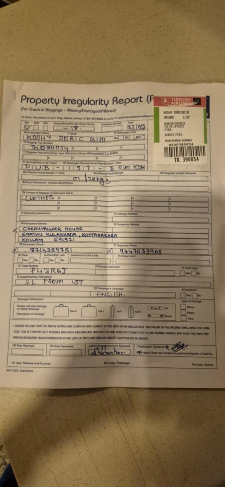 ജൂലൈ 23നാണ് ബിജോയിയും കുടുംബവും അയര്ലന്ഡില് നിന്ന് നാട്ടിലേക്ക് യാത്ര ചെയ്തത്. ഇന്ഡിഗോ വിമാനത്തില് മുംബൈ വഴിയാണ് ഇവര് കൊച്ചിയിലെത്തിയത്. മുബൈ വഴിയുള്ള കൊച്ചി ഇന്ഡിഗോ എയര്ലൈന്സിലാണ് കുടുംബം യാത്ര ചെയ്തത്. ഡബ്ലിനില് നിന്ന് ഇവര് നാല് ബാഗുകളുമായാണ് നാട്ടിലേക്ക് വിമാനം കയറിയത്. എന്നാല് കുടുംബം മുംബൈയിലെത്തിയപ്പോള് അവര്ക്ക് മൂന്ന് ബാഗുകളാണ് തിരികെ ലഭിച്ചത്. ഒരു പെട്ടി നഷ്ടമായ വിവരവും രേഖകളുമടക്കം ബിജോയ് വിമാന അധികൃതര്ക്ക് പരാതി നല്കി. പിന്നീട് ദിവസങ്ങള്ക്ക് ശേഷം ഓഗസ്റ്റ് രണ്ടിന് ഇന്ഡിഗോ പ്രതിനിധികള് ഇവരുടെ നഷ്ടമായ ബാഗേജ് എത്തിച്ചു നല്കി.