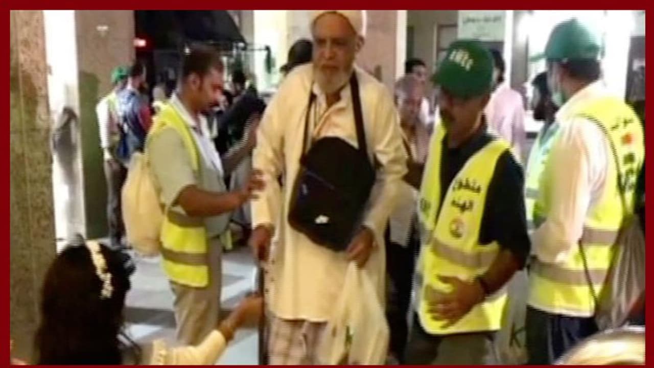 ഇന്ത്യൻ പതാകയേന്തിയ ബാലികമാരും മലയാളികളായ ഹജ്ജ് വളണ്ടിയർമാരും ഉൾപ്പെടെയുള്ളവർ ആദ്യ മലയാളി സംഘത്തെ സ്വീകരിക്കാൻ വിമാനത്താവളത്തിൽ എത്തിയിരുന്നു