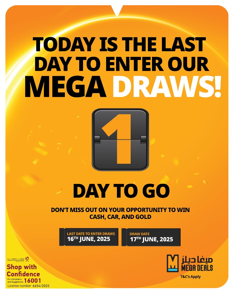 നിങ്ങളുടെ സ്വന്തം മെഗാ ഡീൽസ് വിജയകഥയെഴുതാനും ഒരുപാട് സമ്മാനങ്ങൾ സ്വന്തമാക്കാനുമുള്ള അവസാനത്തെ അവസരമാണിത്.
