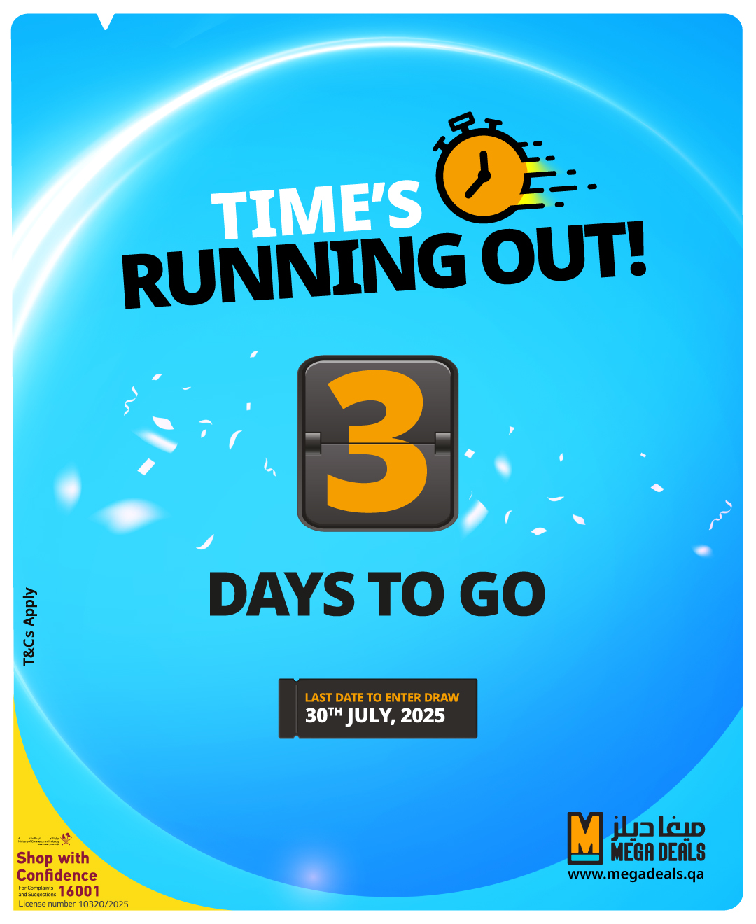 മെഗാ ഡീൽസ് ഗ്രാൻഡ് പ്രൈസ് ഡ്രോയിലേക്ക് ഇനി അധികം ദൂരമില്ല. 2025 ജൂലൈ 31-ന് നടക്കുന്ന ഡ്രോയിൽ 500,000 ഖത്തർ റിയാലാണ് മൊത്തം ക്യാഷ് പ്രൈസ് ആയി നേടാനാകുക. വെറും മൂന്നു ദിവസങ്ങളാണ് ഡ്രോയിലേക്ക് അവശേഷിക്കുന്നത്, പക്ഷേ ഉപയോക്താക്കൾക്ക് ഇപ്പോഴും ഡ്രോയിൽ പങ്കെടുക്കാം. ജൂലൈ 30-ന് രാത്രി 11.59 വരെ എൻട്രികൾ അനുവദിക്കും.