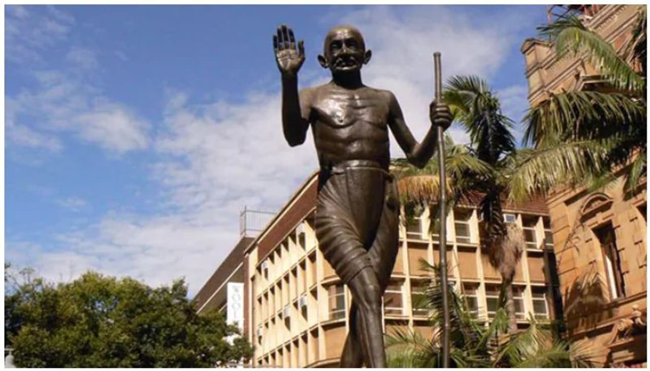 1893ല് യാത്രക്കിടെ വെള്ളക്കാരനായ ഒരാള് ഗാന്ധിജിയെ ട്രെയിനില് നിന്ന് തള്ളി പുറത്താക്കിയ സ്ഥലമാണ് ദക്ഷിണാഫ്രിക്കയിലെ പീറ്റര്മാരിറ്റ്സ്ബര്ഗ്. ഗാന്ധിജിയുടെ വെങ്കല പ്രതിമ ഇന്ന് പീറ്റര്മാരിറ്റ്സ്ബര്ഗിലെ ചര്ച്ച് സ്ട്രീറ്റില് നിലകൊള്ളുന്നു. ദക്ഷിണാഫ്രിക്കയിലെ ആര്ച്ച് ബിഷപ് ഡെസ്മണ്ട് ടുട്ടു ആണ് പ്രതിമ അനാച്ഛാദനം ചെയ്തത്.