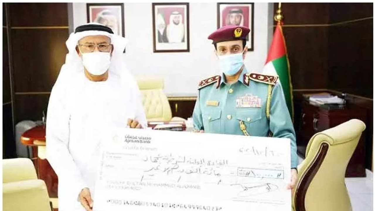 യുഎഇയുടെ 49-ാം ദേശീയ ദിനത്തോടനുബന്ധിച്ചാണ് അദ്ദേഹം സംഭാവന നല്കിയത്. യൂസഫ് സുല്ത്താന് അല് അജ്മാനിയുടെ പക്കല് നിന്നും ഒരു ലക്ഷം ദിര്ഹത്തിന്റെ ചെക്ക് അ്ജമാന് പൊലീസ് മേധാവി മേജര് ജനറല് ശൈഖ് സുല്ത്താന് ബിന് അബ്ദുള്ള അല് നുഐമി സ്വീകരിച്ചു.