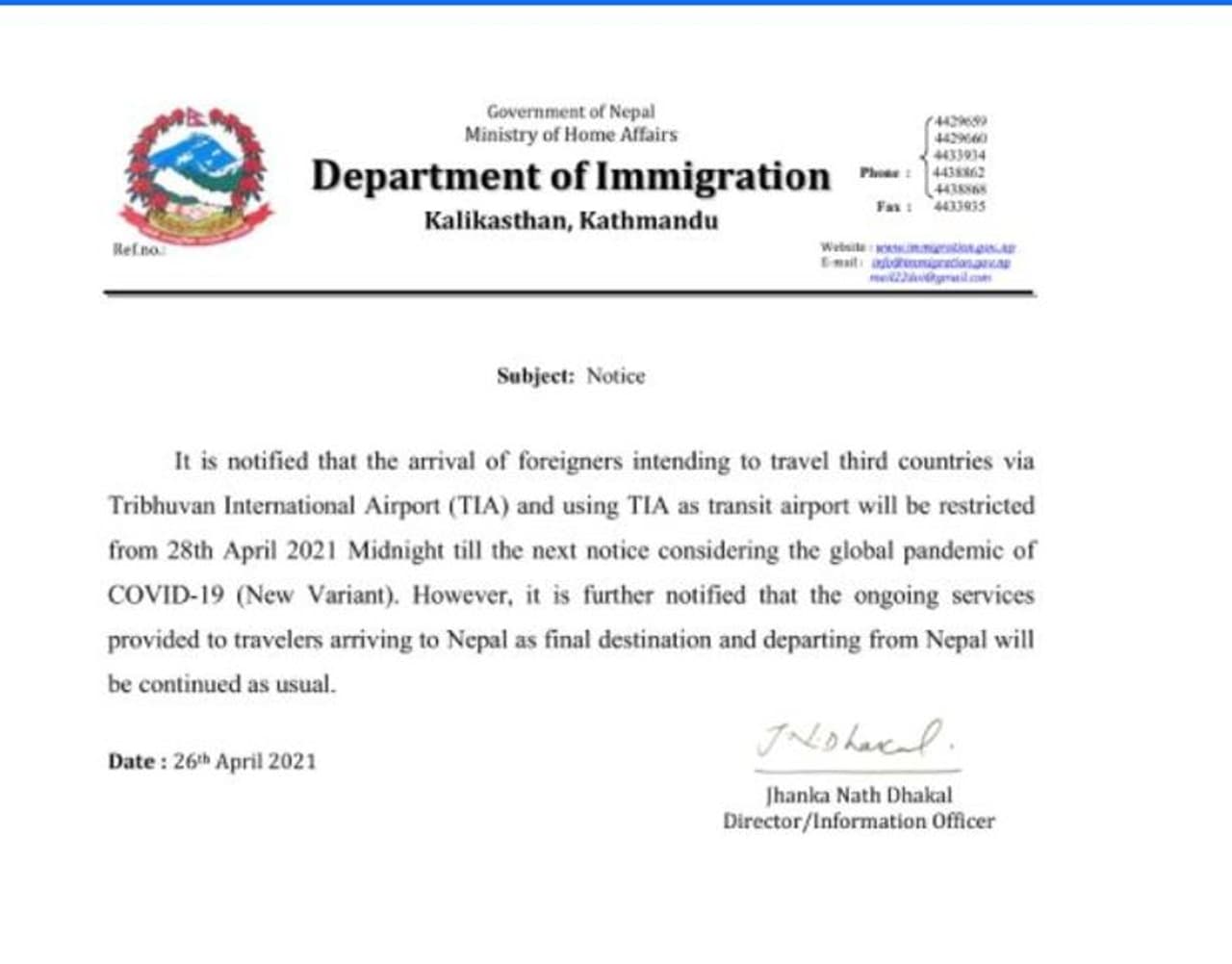 നിയന്ത്രണം ഏര്പ്പെടുത്തുമെന്ന് എമിഗ്രേഷന്റെ അറിയിപ്പില് വ്യക്തമാക്കുന്നു. ഇനിയൊരു അറിയിപ്പ് ഉണ്ടാകുന്നത് വരെ തീരുമാനം തുടരും. അതേസമയം നേപ്പാളിലേക്ക് മാത്രമായി എത്തുന്നവര്ക്ക് പുതിയ അറിയിപ്പ് ബാധകമല്ല.
