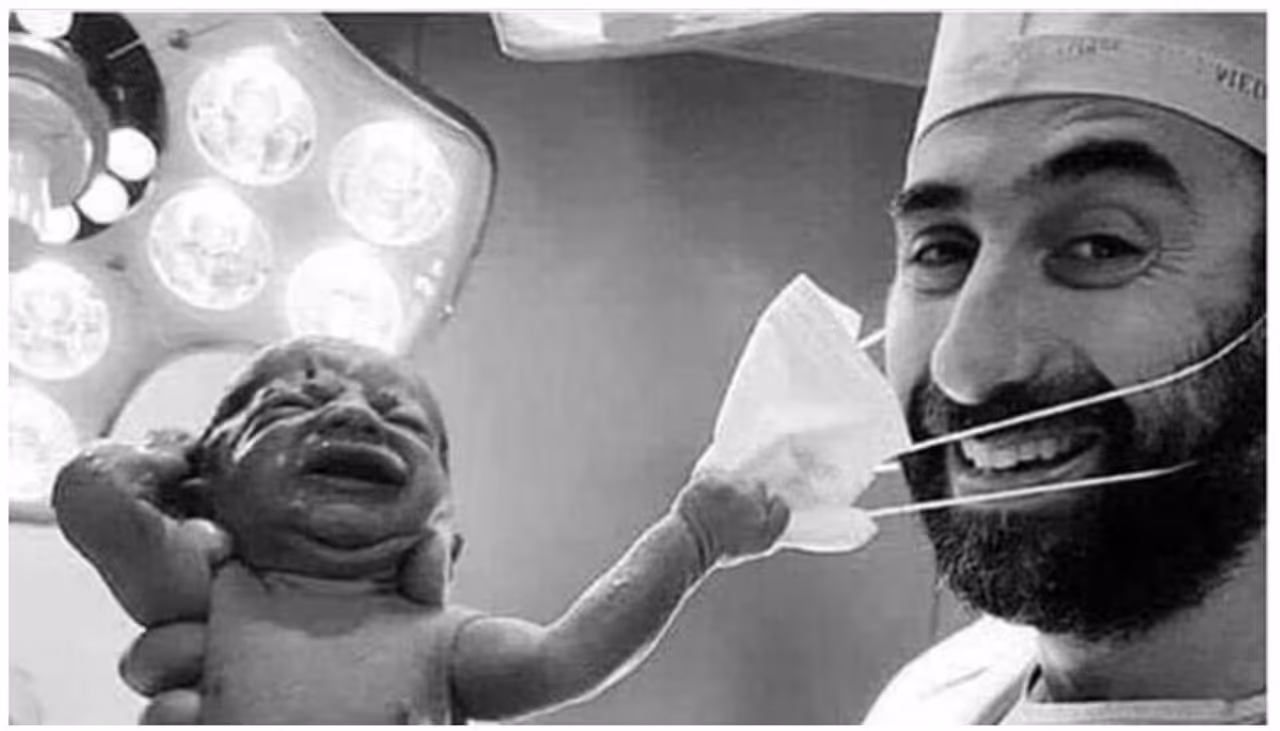 എന്എംസി ഉടമസ്ഥതയിലുള്ള ദുബൈയിലെ ഫാകിഹ് ഐവിഎഫ് ക്ലിനിക്കിലെ ഗൈനക്കോളജിസ്റ്റായ ലെബനീസ് ഡോക്ടര് സാമര് ഷി ഐബാണ് ചിത്രത്തിലുള്ളത്. വൈകാതെ നമ്മള് മാസ്ക് ഉപേക്ഷിക്കുമെന്നതിന്റെ ശുഭസൂചനയാണിതെന്ന അടിക്കുറിപ്പോടെയാണ് ഡോ. സാമര് ചിത്രം സാമൂഹിക മാധ്യമങ്ങളില് പങ്കുവെച്ചത്. പിറന്ന ഉടനെ ഡോക്ടറുടെ മുഖത്തെ മാസ്ക് നീക്കുന്ന കുഞ്ഞും കുഞ്ഞിനെ കയ്യിലെടുത്ത് പുഞ്ചിരിക്കുന്ന ഡോക്ടറും സാമൂഹിക മാധ്യമങ്ങളില് വളരെ പെട്ടെന്ന് വൈറലായി. ഇന്ത്യന് സിവില് വ്യോമയാന മന്ത്രി ഹര്ദീപ് സിങ് പുരി ഡോ. സാമറിന്റെ ട്വീറ്റ് പങ്കുവെച്ചു. പ്രതീക്ഷയും സന്തോഷവും കൊണ്ട് ഹൃദയം നിറയ്ക്കൂ എന്ന് കുറിച്ചാണ് അദ്ദേഹം ചിത്രം ട്വീറ്റ് ചെയ്തത്.