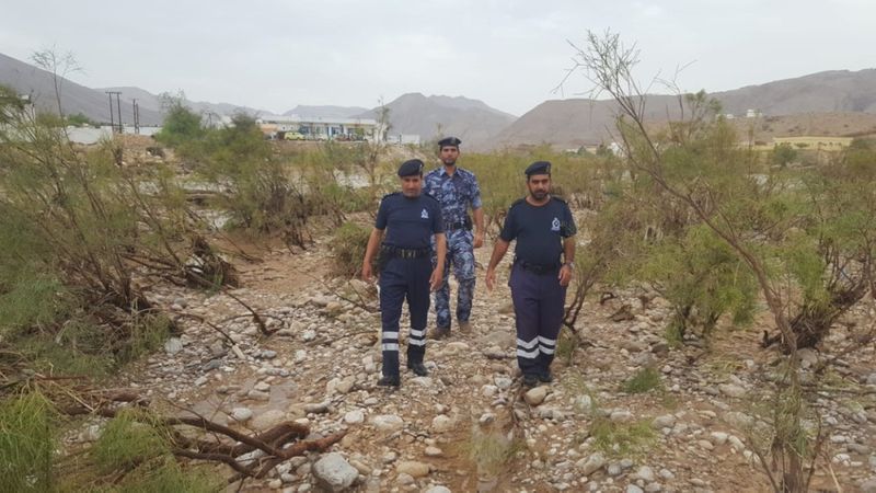 കാണാതായവര് ഏഷ്യക്കാരണെന്ന് മാത്രമാണ് ലഭ്യമാവുന്ന വിവരം. ഇവര് സഞ്ചരിച്ചിരുന്ന വാഹനം പ്രളയത്തില് പെട്ട് ഒലിച്ചുപോവുകയായിരുന്നു. കഴിഞ്ഞ ദിവസം രാത്രി വരെ തെരച്ചില് നടത്തിയെങ്കിലും പിന്നീട് കാഴ്ച ദുഷ്കരമായതോടെ നിര്ത്തിവെച്ചു. തുടര്ന്ന് ഇന്ന് രാവിലെ വീണ്ടും തെരച്ചില് തുടങ്ങി. സിവില് ഡിഫന്സിനൊപ്പം പൊലീസും കാണാതായവരെ കണ്ടെത്താനുള്ള ശ്രമങ്ങള് തുടരുകയാണ്.