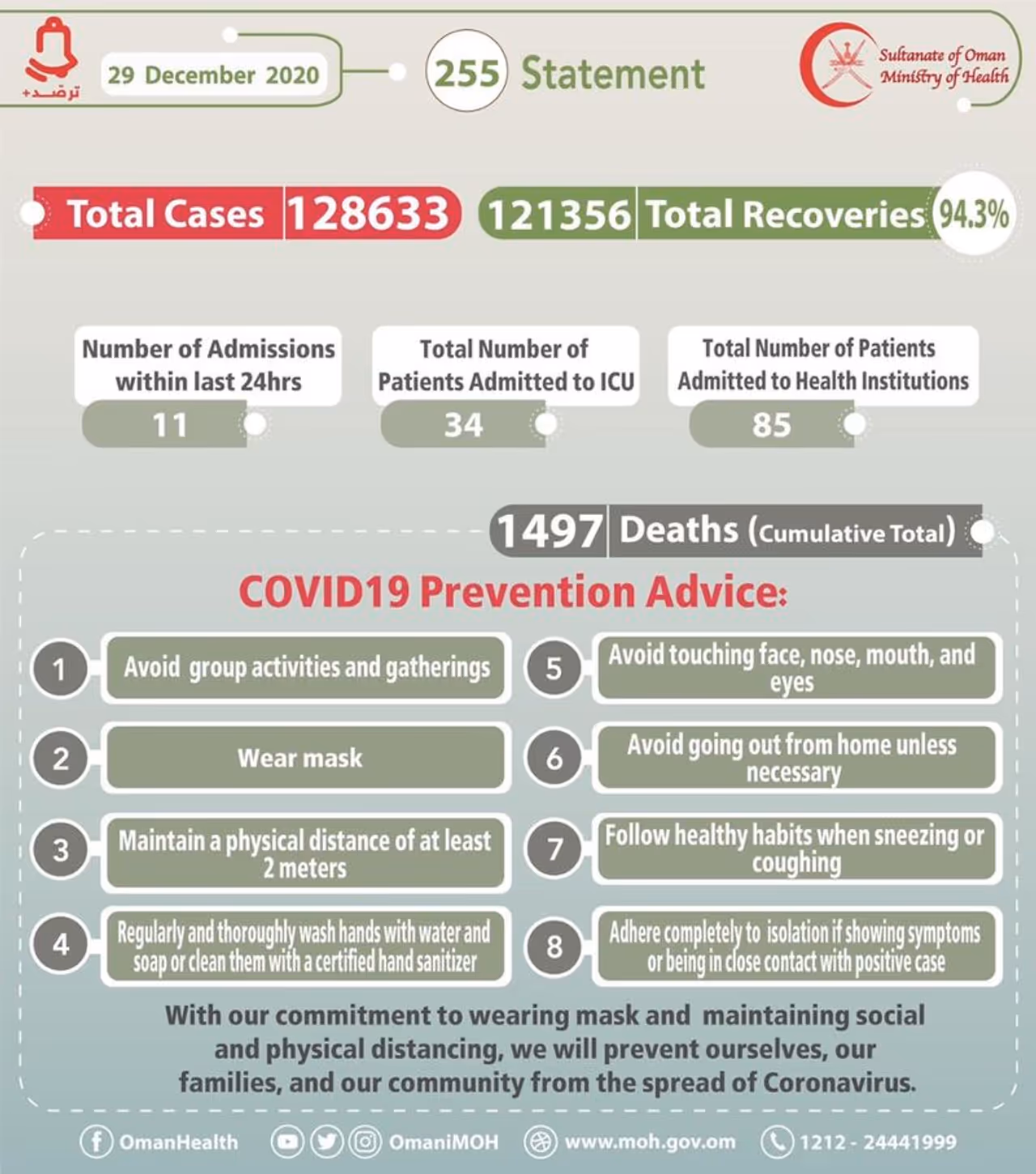 മസ്കറ്റ്: ഒമാനില് രണ്ട് പേര് കൂടി കൊവിഡ് ബാധിച്ച് മരിച്ചതായി ആരോഗ്യ മന്ത്രാലയം അറിയിച്ചു. 70 പേര്ക്ക് കൂടി പുതിയതായി രോഗം സ്ഥിരീകരിച്ചു. രാജ്യത്ത് ഇതുവരെ കൊവിഡ് സ്ഥിരീകരിക്കപ്പെട്ടവരുടെ എണ്ണം 128633 ആയി.