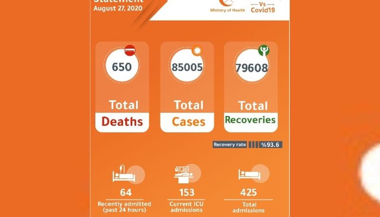 ഒമാനില് ഇതുവരെ 85005 പേര്ക്കാണ് കൊവിഡ് സ്ഥിരീകരിക്കപ്പെട്ടിട്ടുള്ളത്. ഇവരില് 79608 പേര് ഇതിനോടകം രോഗമുക്തരായിട്ടുണ്ട്.