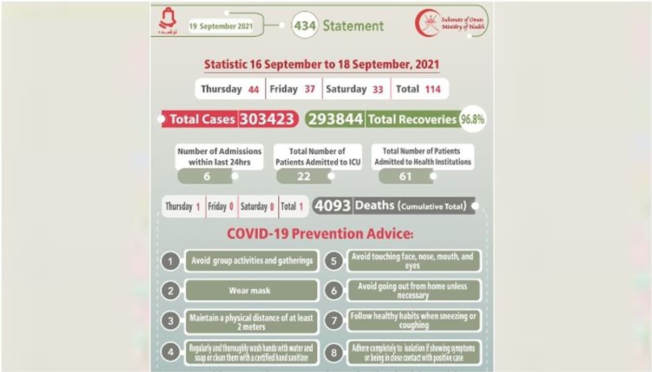 മസ്കത്ത്: ഒമാനില് മൂന്ന് ദിവസത്തിനിടെ 114 പേര്ക്ക് കൊവിഡ് വൈറസ് ബാധ സ്ഥിരീകരിച്ചതായി ആരോഗ്യ മന്ത്രാലയം അറിയിച്ചു. കൊവിഡ് ബാധിച്ച് ഒരാള് കൂടി മരിച്ചു. 226 പേര് കൂടി രോഗമുക്തി നേടി.
