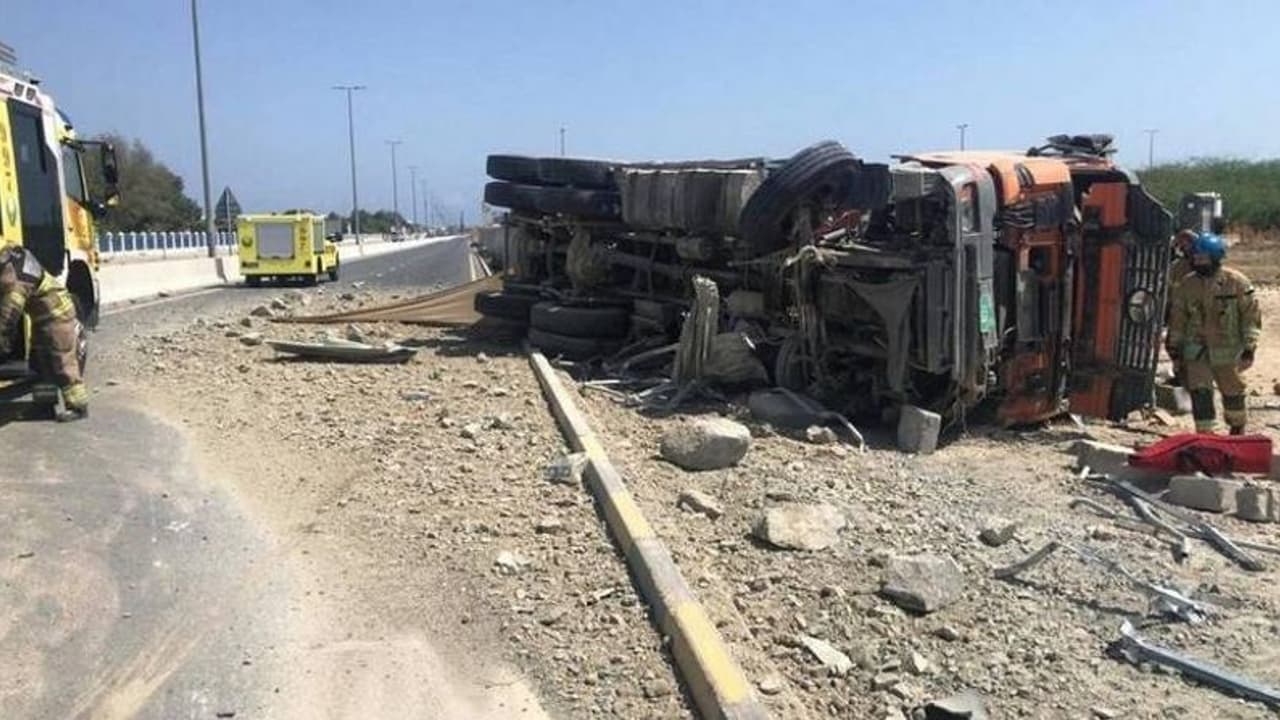 ബുധനാഴ്ച ഉച്ചയ്ക്ക് ഒരു മണിയോടെയായിരുന്നു സംഭവം. അല് മക്തൂം റോഡിനെ ഫുജൈറ സീപോര്ട്ടുമായി ബന്ധിപ്പിക്കുന്ന യസ്ബ റോഡിലാണ് അപകടമുണ്ടായതെന്ന് ഫുജൈറ പൊലീസ് ട്രോഫിക് ആന്റ് പട്രോള് വിഭാഗം ഡയറക്ടര് കേണല് സലേഹ് മുഹമ്മദ് അബ്ദുല്ല അല് ദനാനി പറഞ്ഞു. ഫുജൈറ പോര്ട്ടിലേക്ക് പോവുകയായിരുന്ന ട്രക്ക് സകാമം റൌണ്ട് എബൌട്ടില്വെച്ച് നിയന്ത്രണം വിട്ട് മറിഞ്ഞു. വാഹനത്തിലുണ്ടായിരുന്ന മറ്റൊരാളിന് ഗുരുതരമായി പരിക്കേറ്റു. ഇയാളെ ഫുജൈറ ആശുപത്രിയില് പ്രവേശിപ്പിച്ചു. ഇയാളുടെ ആരോഗ്യനില ഇപ്പോള് തൃപ്തികരമാണെന്നും കുറച്ച് ദിവസം കൂടി ആശുപത്രിയില് കഴിയേണ്ടി വരുമെന്നും ആശുപത്രി അധികൃതര് അറിയിച്ചു. ട്രക്ക് ഡ്രൈവര്മാര് വേഗ നിയന്ത്രണവും നിയമങ്ങളും പാലിക്കണമെന്ന് ട്രാഫിക് പൊലീസ് ഓര്മിപ്പിച്ചു.