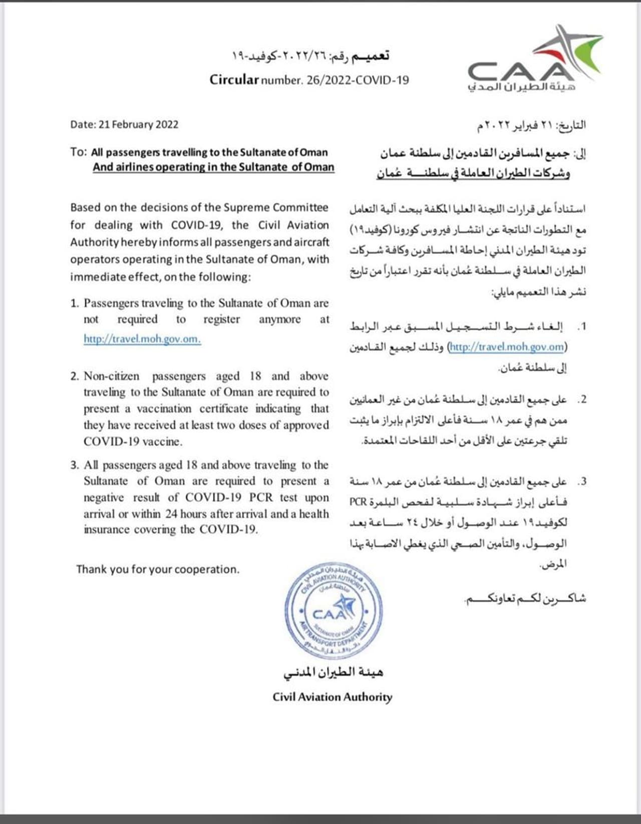 മസ്കറ്റ്: ഒമാനിലേക്ക് (Oman) എത്തുന്ന യാത്രക്കാര് ആരോഗ്യ മന്ത്രാലയത്തിന്റെ (Ministry of Health) വെബ്സൈറ്റില് ഇനിയും മുന്കൂറായി രജിസ്റ്റര് ചെയ്യേണ്ട ആവശ്യമില്ല എന്ന് സിവില് എവിയേഷന് സമിതി (Civil Aviation Committee) അറിയിച്ചു. സിവില് ഏവിയേഷന് സമിതി പുറത്തുവിട്ട സര്ക്കുലറിലാണ് ഇക്കാര്യം വ്യക്തമാക്കുന്നത്. എന്നാല് 18 വയസ്സിന് മുകളിലുള്ള യാത്രക്കാര് കൊവിഡ് വാക്സിന്റെ രണ്ട് ഡോസ് സ്വീകരിച്ചതിന്റെ സര്ട്ടിഫിക്കറ്റ് ഹാജരാക്കണം.