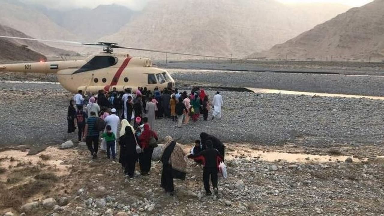ശനിയാഴ്ച പെട്ടെന്നുണ്ടായ മഴയില് വെള്ളം കുത്തിയൊലിച്ചതോടെ ജബല് ജൈസിലേക്കുള്ള റോഡുകള് തകരുകയായിരുന്നു. തുടര്ന്നാണ് സന്ദര്ശകര് കുടുങ്ങിയത്. 20 പേരടങ്ങുന്ന സംഘങ്ങളായി തിരിച്ചാണ് പൊലീസ് ഹെലികോപ്റ്ററില് ഇവരെ സുരക്ഷിത സ്ഥാനങ്ങളിലെത്തിച്ചത്.