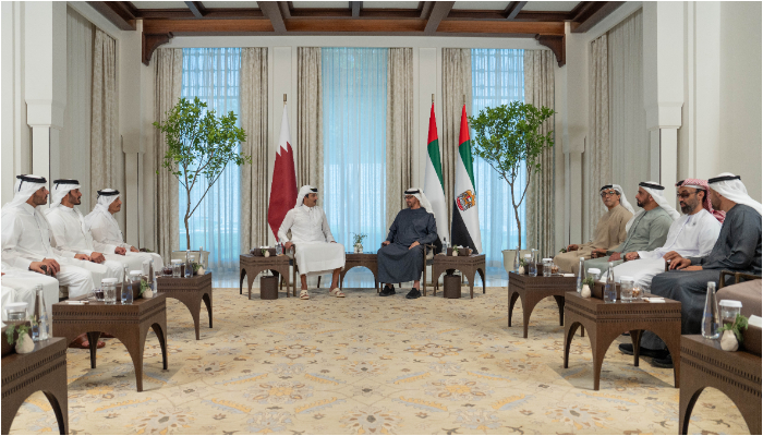 ഇരുനേതാക്കളും തമ്മിലുള്ള കൂടിക്കാഴ്ചയിൽ ഇരു രാജ്യങ്ങളും തമ്മിൽ വിവിധ മേഖലകളിലെ സഹകരണം ശക്തിപ്പെടുത്തുന്നതിനും സാഹോദര്യ ബന്ധം നിലനിർത്തുന്നതിനും പരസ്പര താൽപര്യങ്ങൾ സംരക്ഷിക്കുന്നത് സംബന്ധിച്ചും ചർച്ച നടത്തിയതായി യു.എ.ഇ വാർത്ത ഏജൻസി ‘വാം’ റിപ്പോർട്ട് ചെയ്തു. ഒപ്പം വിവിധ പ്രാദേശിക, അന്തർദേശീയ വിഷയങ്ങളും, മിഡിൽ ഈസ്റ്റിലെ ഏറ്റവും പുതിയ സംഭവവികാസങ്ങളും കൂടിക്കാഴ്ചയിൽ ചർച്ചയായി. ഇരു രാജ്യങ്ങളും തമ്മിലെ ബന്ധങ്ങൾ കൂടുതൽ ശക്തമാക്കുന്നതായിരുന്നു കൂടിക്കാഴ്ചയെന്ന് ഖത്തർ അമീർ സോഷ്യൽ മീഡിയയിൽ പങ്കുവെച്ചു.