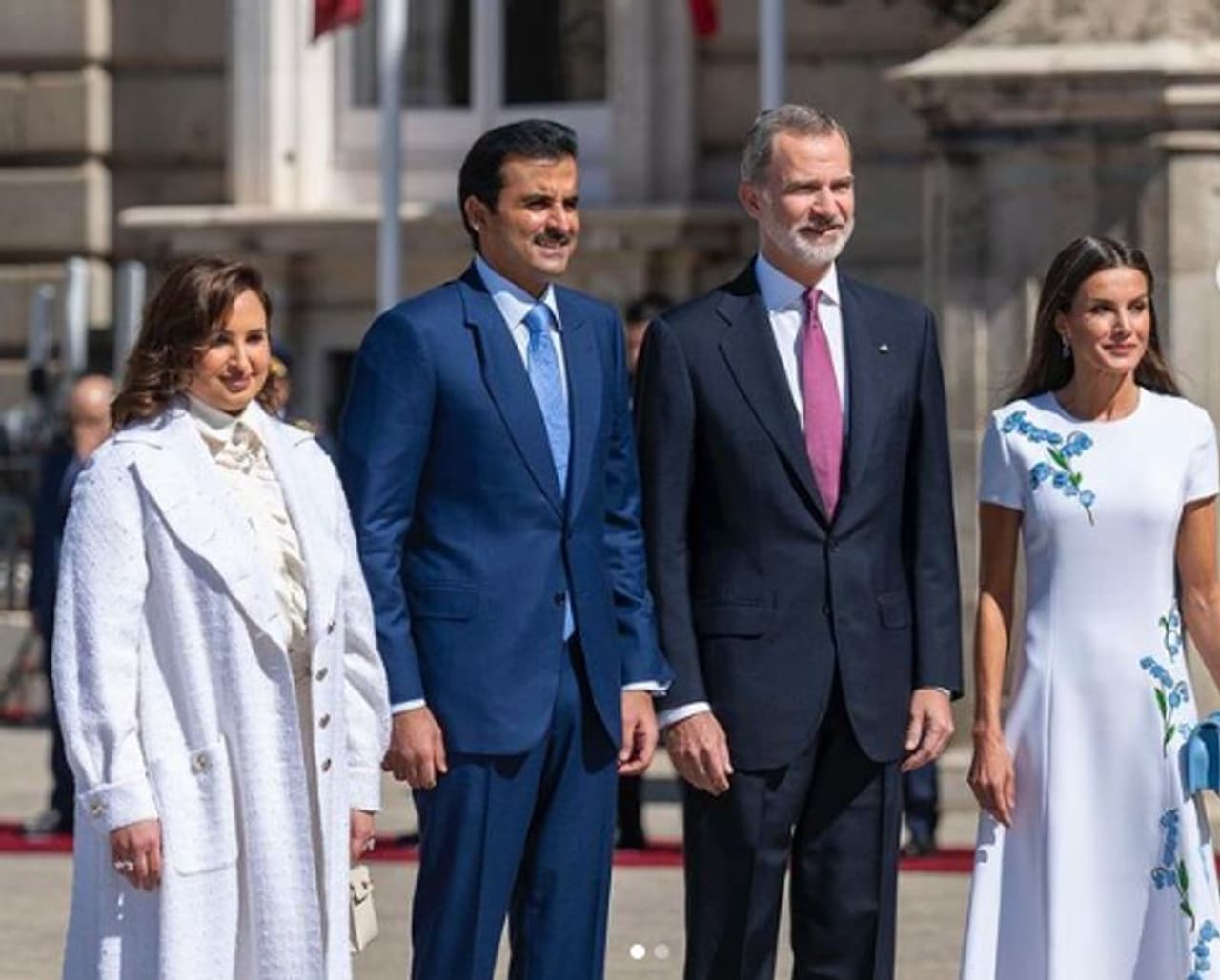 തലസ്ഥാന നഗരിയായ മാഡ്രിഡില് സര്സുവേല കൊട്ടാരത്തില് സ്പാനിഷ് രാജാവ് ഫിലിപ്പ് ആറാമനും രാജ്ഞി ലെറ്റിസിയക്കുമൊപ്പമുളള ഗ്രൂപ്പ് ഫോട്ടോയിലാണ് ഖത്തര് അമീറിന്റെ പത്നി ആദ്യമായി പ്രത്യക്ഷപ്പെട്ടത്. 2013ല് ഖത്തര് അമീറായി സ്ഥാനമേറ്റ ശേഷം ശൈഖ് തമീം ബിന് ഹമദ് അല്ഥാനി നടത്തുന്ന ആദ്യ സ്പെയിന് സന്ദര്ശനമാണിത്.