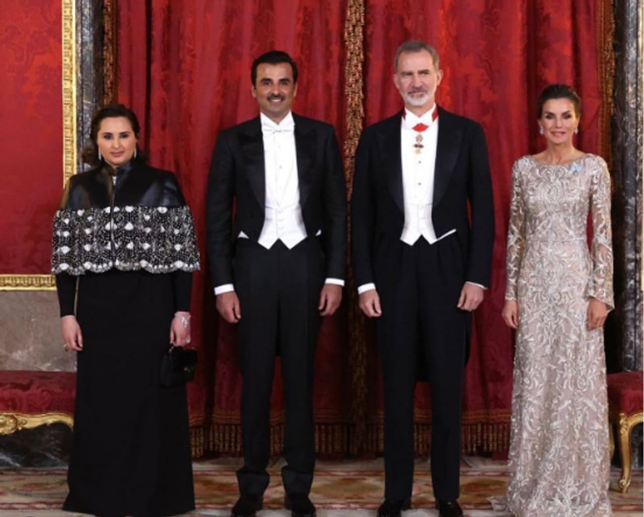 തലസ്ഥാന നഗരിയായ മാഡ്രിഡില് സര്സുവേല കൊട്ടാരത്തില് സ്പാനിഷ് രാജാവ് ഫിലിപ്പ് ആറാമനും രാജ്ഞി ലെറ്റിസിയക്കുമൊപ്പമുളള ഗ്രൂപ്പ് ഫോട്ടോയിലാണ് ഖത്തര് അമീറിന്റെ പത്നി ആദ്യമായി പ്രത്യക്ഷപ്പെട്ടത്.