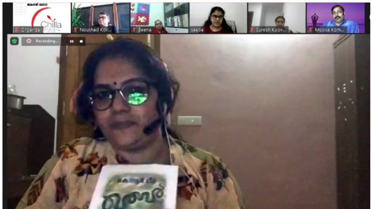 മാധ്യമപ്രവര്ത്തകനും കവിയുമായ കെ.പി. റഷീദിന്റെ 'ലോക് ഡൗണ് ഡേയ്സ്,- അടഞ്ഞ ലോകത്തിന്റെ ആത്മകഥ' എന്ന പുസ്തകം നജിം കൊച്ചുകലുങ്ക് അവതരിപ്പിച്ചു. ടി.ഡി. രാമകൃഷ്ണെന്റ 'മാമ ആഫ്രിക്ക'യുടെ വായനാസ്വാദനം കൊമ്പന് മൂസ നടത്തി. ബീന, ഇഖ്ബാല് കൊടുങ്ങല്ലൂര്, വിപിന് കുമാര്, അമൃത സുരേഷ് എന്നിവര് ചര്ച്ചയില് പങ്കെടുത്ത് സംസാരിച്ചു. സീബ കൂവോട് മോഡറേറ്ററായിരുന്നു. ഈ വര്ഷത്തെ ഖത്തര് സംസ്കൃതി സിവി ശ്രീരാമന് പുരസ്കാരം നേടിയ ബീനയെ ചില്ലയിലെ സഹഅംഗങ്ങള് അനുമോദിച്ചു.